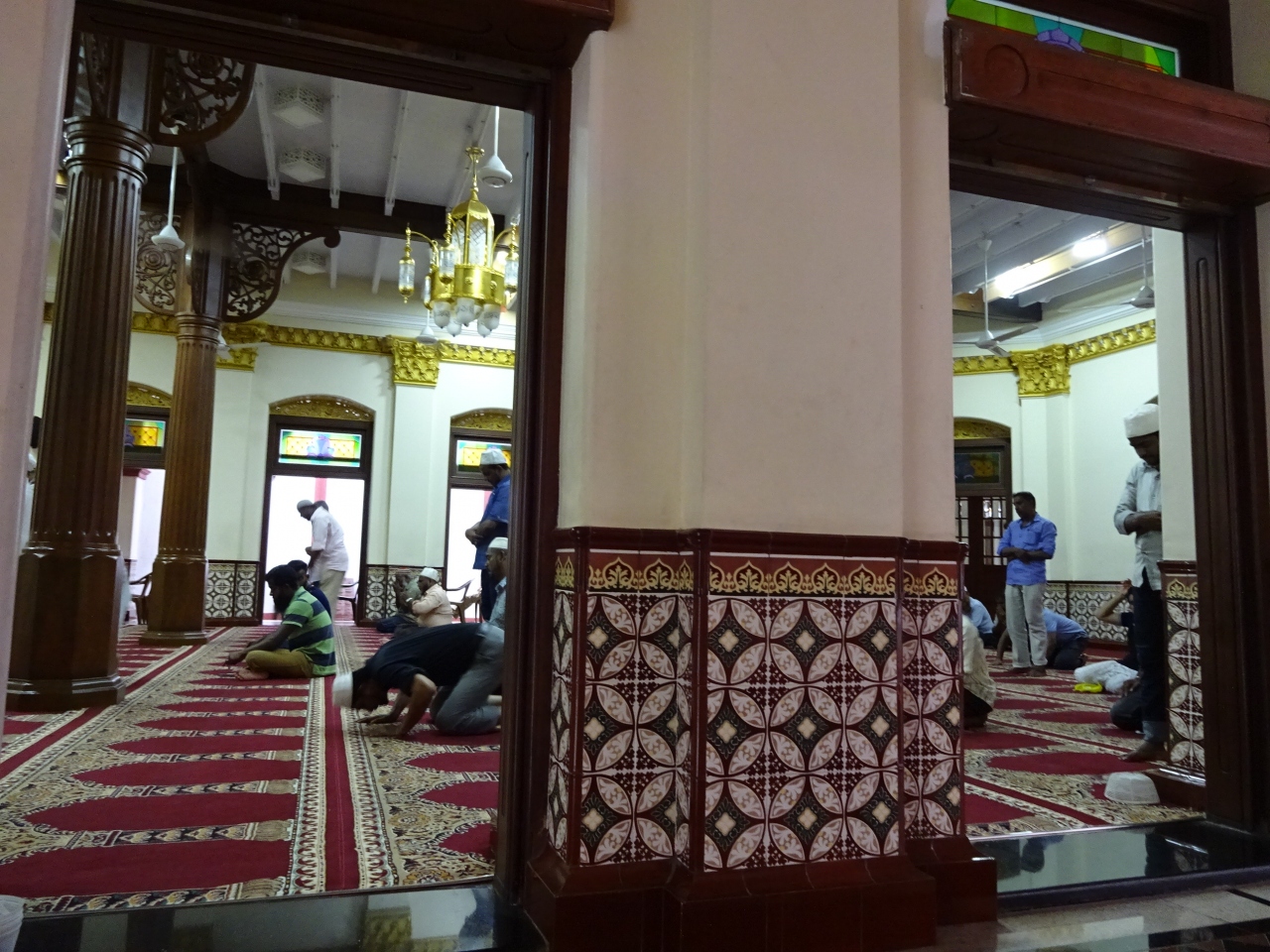 仏教国のスリランカですがムスリムの方も多いようで、このモスクにも引っ切り無しに人が出入りしていました。しかし観光客は全くおらず、入ってもいいのか判断しかねて入口から様子を伺っていたら、入ってすぐの所にある窟預り所のスタッフが笑顔で手招きしてくれました。- 旅行時期