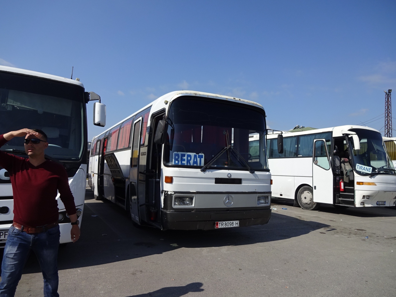 バスターミナルの入口に客引きのような人達がいて、「ベラティ?」と声を掛けてくれ、バスまで案内してくれました。沢山のバスが並んでいますが、車掌?運転手?がバスの前で「ベラーティ!」「デュラス!」と勇ましい声を上げているのでとても分かりやすい。