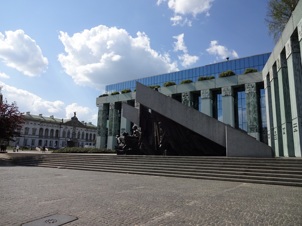 現在地を把握せずに歩いている時にたまたま前を通りかかりました。その時は具体的に何のモニュメントかは理解していませんでしたが、決死の状況が伝わってくる像を見て、ワルシャワ蜂起に関するものだろうと察しました。