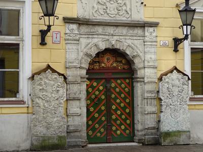 ブラックヘッドの会館といえばリガの物が有名ですが、歩き方を見るとタリン旧市街にもあるらしい。ピック通りを何度も歩いて探しましたが、結局見つけることができませんでした。後から写真を見直して、ピック通りに最初に来た時に扉の写真を撮っていたことに気が付きました。有名な建物だと知らなくても目を引くドアです。