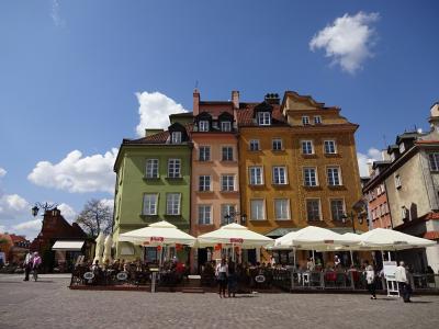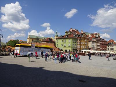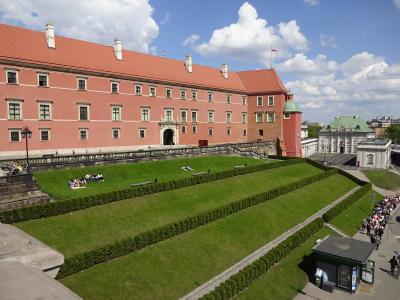 王宮広場からは全く見えませんが、手前の住宅街と競技場との間にはヴィスワ川が流れています。- 旅行時期