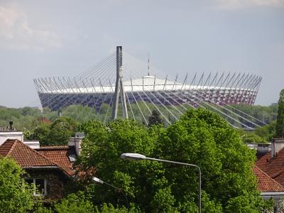 旧王宮と聖アンナ教会との間には、立体交差で道路が通っており、ワルシャワ国立競技場が見えました。サッカー専用の競技場で、ポーランド・ウクライナ共催のUEFA EURO 2012や、2015年のUEFAヨーロッパリーグ決勝戦の会場です。