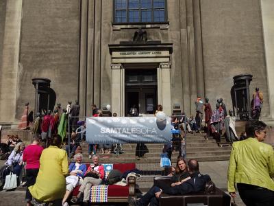 私が通りかかった時には何やらイベントが行われていて、入口に並んでいる胸像が色とりどりのストールでお洒落に装われていました。そのお洒落がとても自然だったので、この像たちが全身像じゃなくてどうやら胸像らしいという事は、写真を見直して初めて気が付きました。