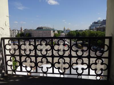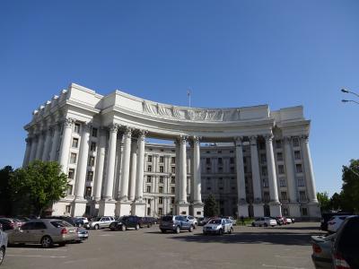 聖ミハイルの黄金ドーム修道院の脇にある建物です。巨大な白亜の建築で、ヨーロッパ的というかローマ的。坂の下のフレシチャーチク通り周辺のソビエト建築はどれも茶色寄りの灰色だったので、この建物のデザインは新鮮に感じました。この建物に限らず、ここからアンドレイ坂方向の建物は全体的にヨーロッパ的でした。