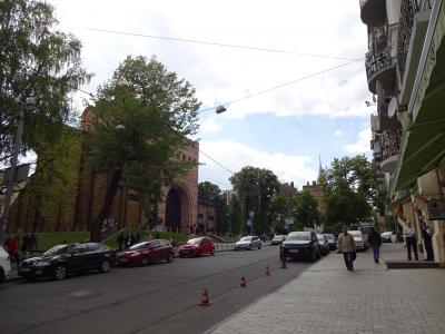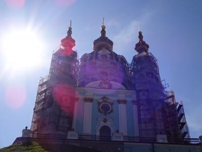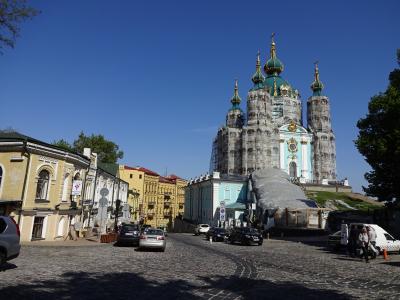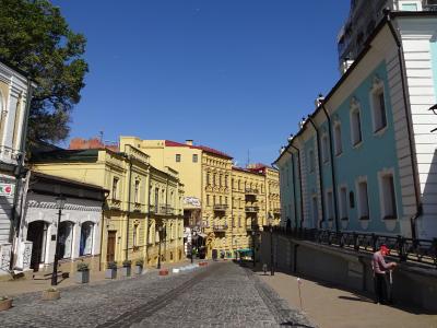 アンドレイ教会の脇から延びている石畳の急坂がアンドレイ坂。山の手と下町を繋ぐ、観光客に人気の通りです。私が行ったのは朝の10時だったからか、人通りはあまりありませんでした。まだ開いていないからだとは思いますが、特に観光客向けの店があるようには見えませんでした。坂の上、ソフィア大聖堂に向かう途中の道には土産物が出ていました。