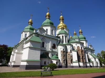 ソフィア大聖堂は、キエフ大公国のヤロスラフ大公が遊牧民ペチェネグの大軍を破ったことを記念して1037年に建てられました。現存するキエフ最古の教会です。広場にヤロスラフ大公の騎馬像があります。5月の頭に行ったら、広場には一面イースターエッグが展示されていて素晴らしい眺めでした。