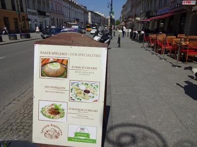 通り沿いはレストランが多く、明るい雰囲気です。北へ進むとクラクフ郊外通りに繋がっています。