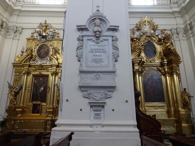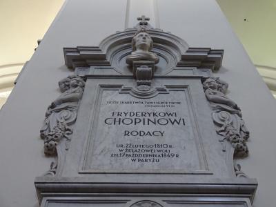 心臓が納められているのは入って左手の柱です。ショパンが1830年にウィーンへ演奏旅行に出掛けた折にワルシャワで11月蜂起(ロシア帝国の支配に対する反乱)が起こり、結果的にショパンは生涯ポーランドに戻ることが出来なくなってしまいました。ショパンは1849年、39歳で亡くなる前に姉のルドヴィカを住んでいたパリに呼び寄せ、「心臓をポーランドに持ち帰って欲しい」と頼みました。