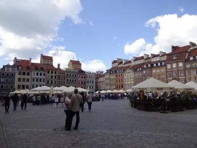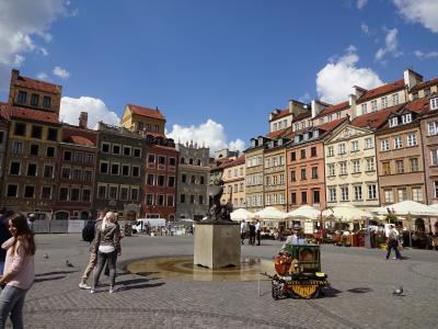 1944年のワルシャワ蜂起の報復として、ナチスドイツに徹底的に破壊されたワルシャワ市街。戦後に「ひびの一本まで」以前の街並みが再現され、1980年に世界遺産に登録されました。旧市街広場の建物も古く見える加工が施されており、歴史ある街並みが全く違和感なく再現されていました。