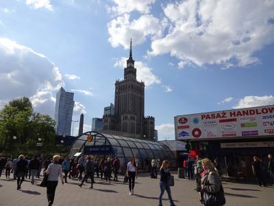 文化科学宮殿の内部には劇場、科学技術博物館、進化博物館、各種研究所、ポーランドTV、映画館、コンサートホール等が入っています。1952年から1955年にかけて建てられ、42階建てで高さは234m。塔の高さが目立ちますが敷地面積自体も広く、全部で3288部屋もあるそうです。