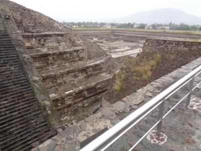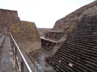 テオティワカン観光中に雨に降られ、30分程雨宿りした後に諦めて止まないうちに行ったので、ほぼ無人でした。降り始めてから暫くは結構混みあっていたので、時間をおいて良かったのかも。ケツァルコアトルの神殿は、ステージのような所から手すり越しにしか見られませんが、ステージは広くないので混雑していると見づらいと思います。