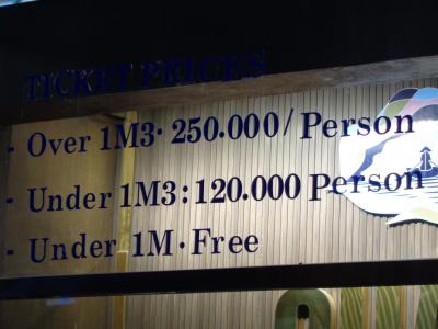 チケット売り場で人数を申告すると、入場料+ボート代を人数で割った金額になるようです。私は1人だったので12万ドン+15万ドン。混雑時は分かりませんが他人との同乗はなく、1人でボートに乗れました。カードは使えません。