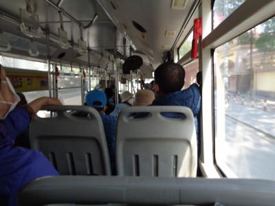 バス停で停車しドアが開きますが、乗り込む客がいなそうなら即座に出発してしまうので走って乗り込みました。2023年1月現在、乗車中はマスクを付けるルールがあるようですが、着けないと乗せてくれないというほど厳格ではなさそうでした。