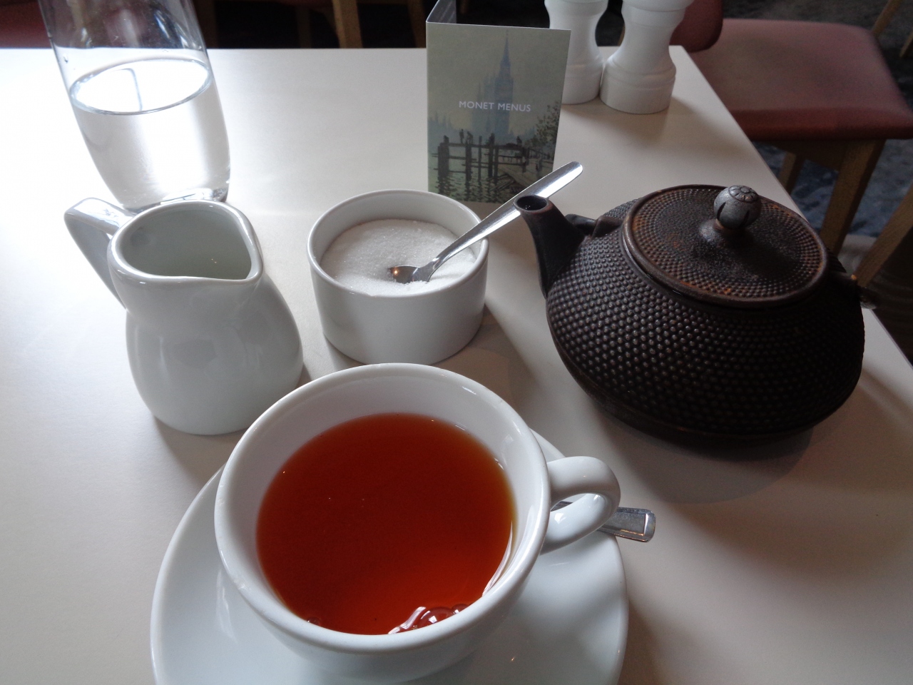 紅茶は鉄瓶で出てきて、大き目のティーカップに4杯分もありました。2人で1ポットで十分です。- 旅行時期