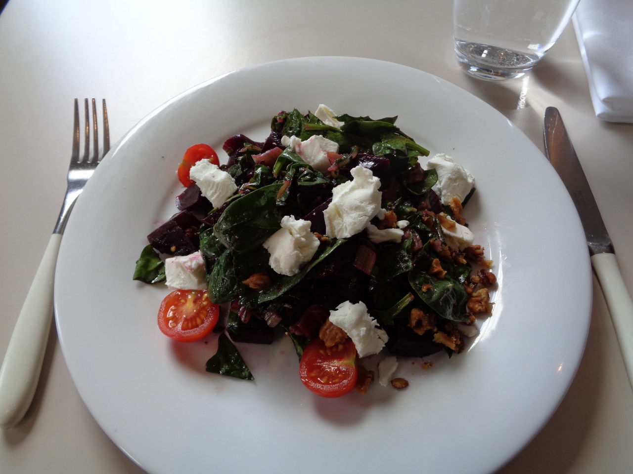 レストランにはデザートはあるものの、スコーンはありませんでした。ビーツと山羊のチーズがメインのサラダを(意図せず)頂きましたが、とても美味しかったです。