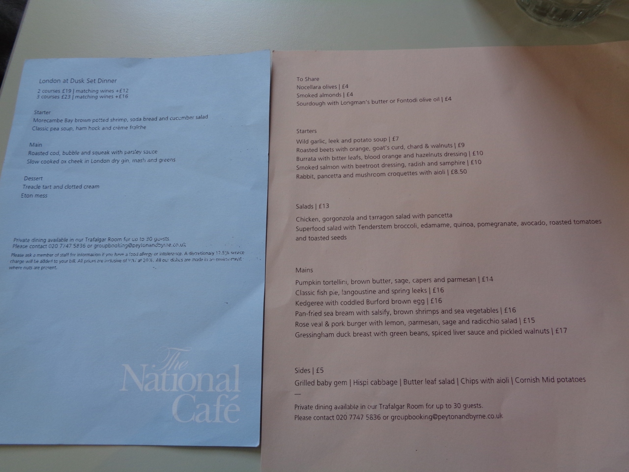 ナショナルギャラリー内にあるカフェです。外からの入口はナショナルポートレートギャラリーへ行く途中にあります。外から入ると普通にフルサービスのレストランです。退店時にナショナルギャラリー内に出たら、そこがセルフサービスのカフェで驚きました。