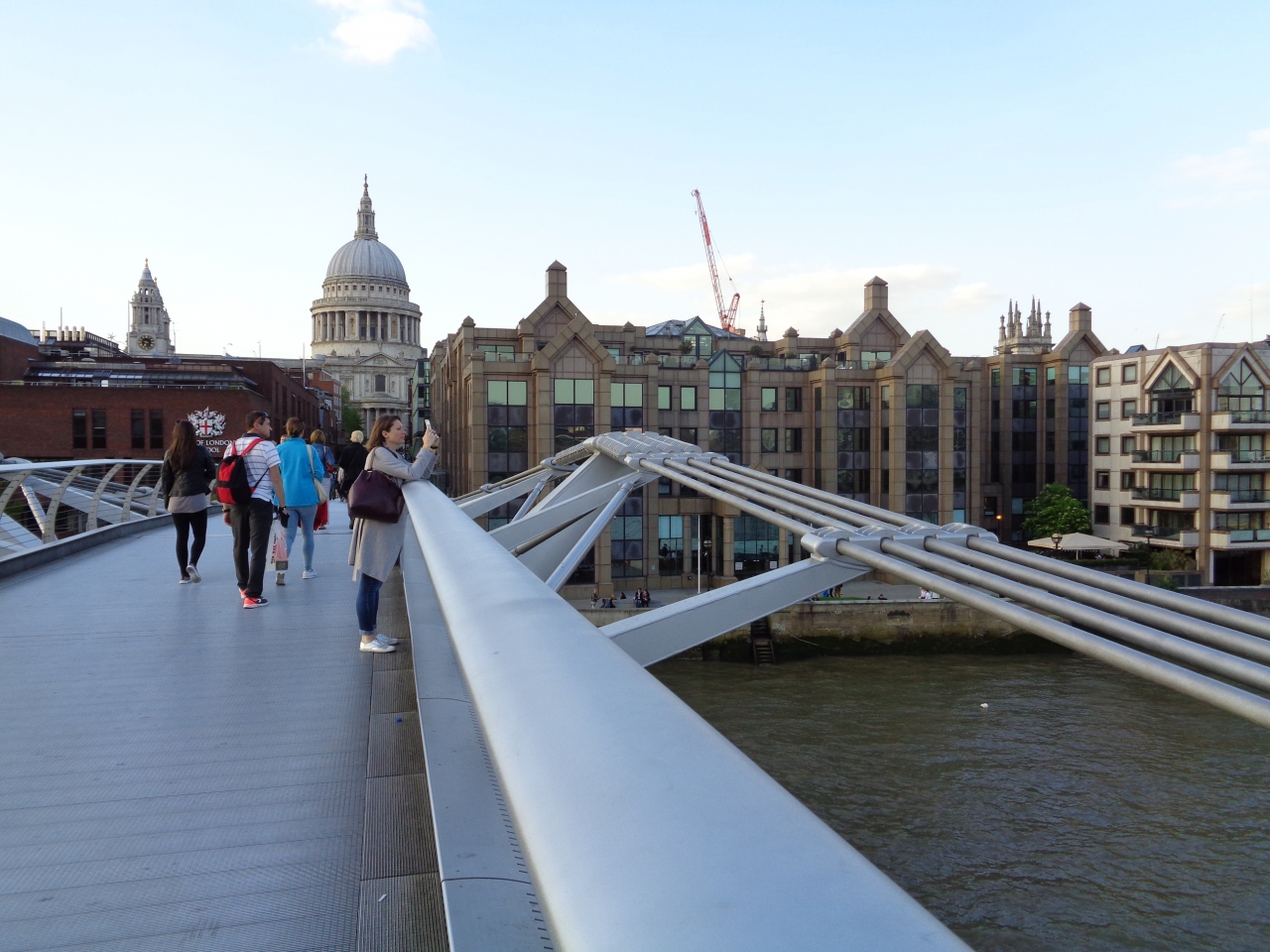 セントポール大聖堂とテート・モダンを真っ直ぐ結ぶ橋です。歩行者専用で、幅もそこまで広くないので、西側・東側と両側の景色を楽しみながらジグザグに進みました。橋の床は鉄板で、歩くとフワフワ揺れます。橋は中央に向かって緩い坂になっています。