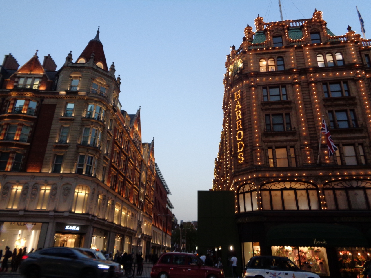 ナイツブリッジ駅の出口の1つが目の前にありますが、この出口はなんと20時で閉鎖されます。ハロッズの営業時間は21時までなのに。ハロッズの顧客は地下鉄なんぞ使わずにタクシーで帰るのかな。
