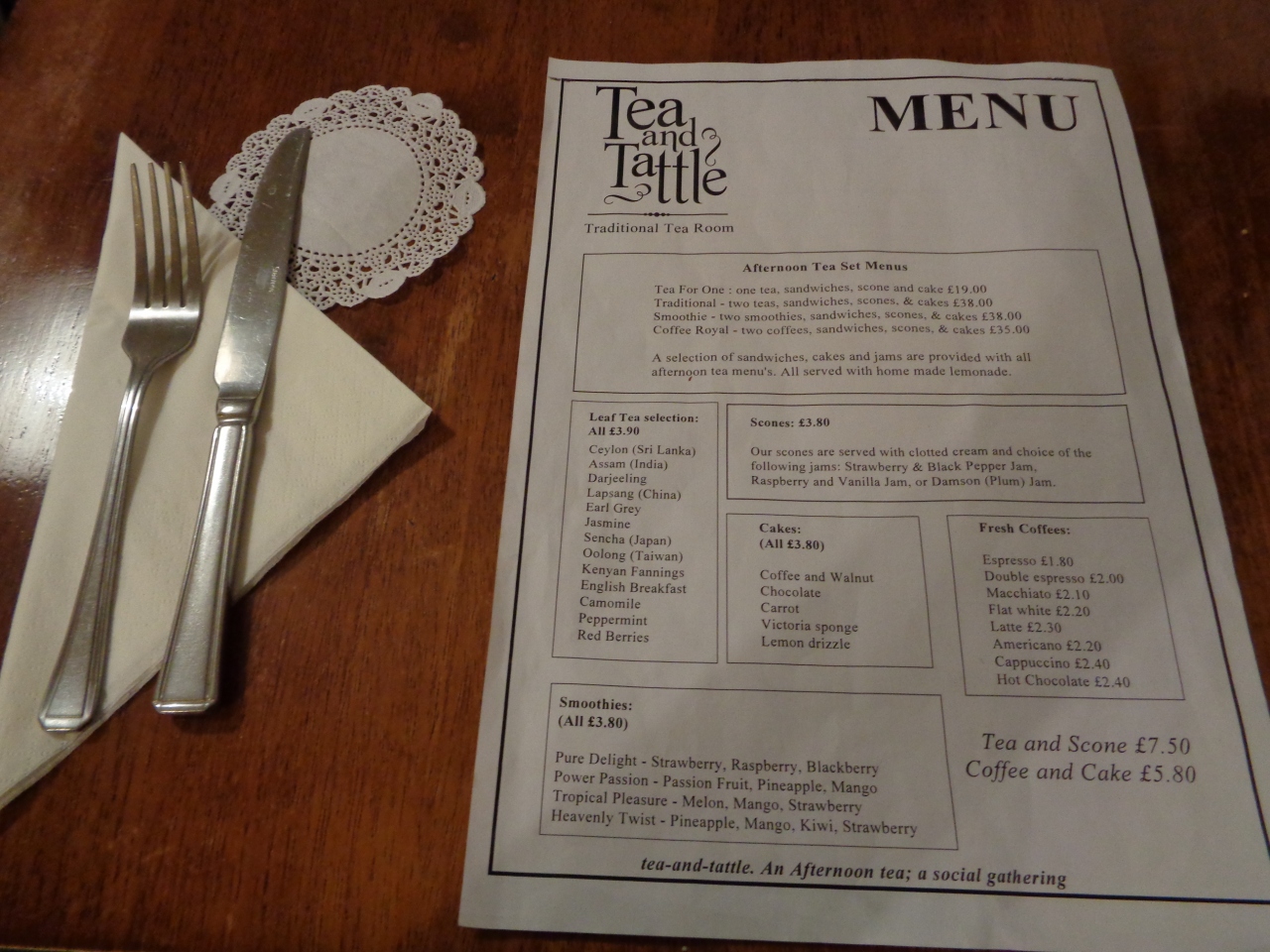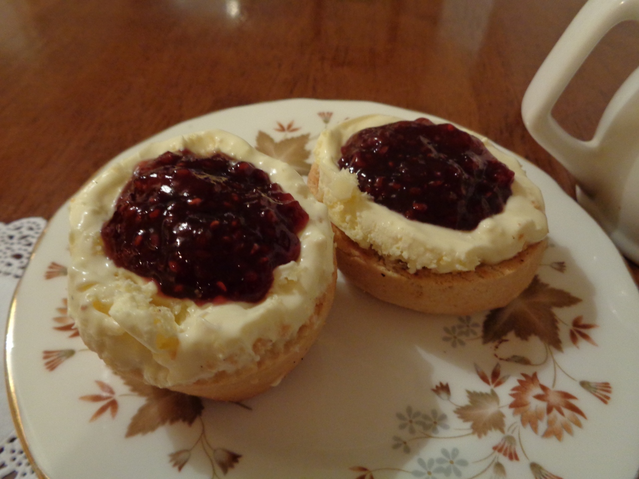 クリームティーというメニューは無く、ティー&スコーン(7.5£)を頂きました。お茶は13種類から、ジャムは3種類から選べます。スコーンには予めクロテッドクリームとジャムが盛り付けられていました。スコーンは小ぶりで、1片が3口分くらい。ほんのり温かくてまろやかで美味しく、幸せな気分になりました。紅茶にはアッサムを頼んだら、希望を聞いてミルクを付けてくれました。紅茶はカップに3杯分くらい。