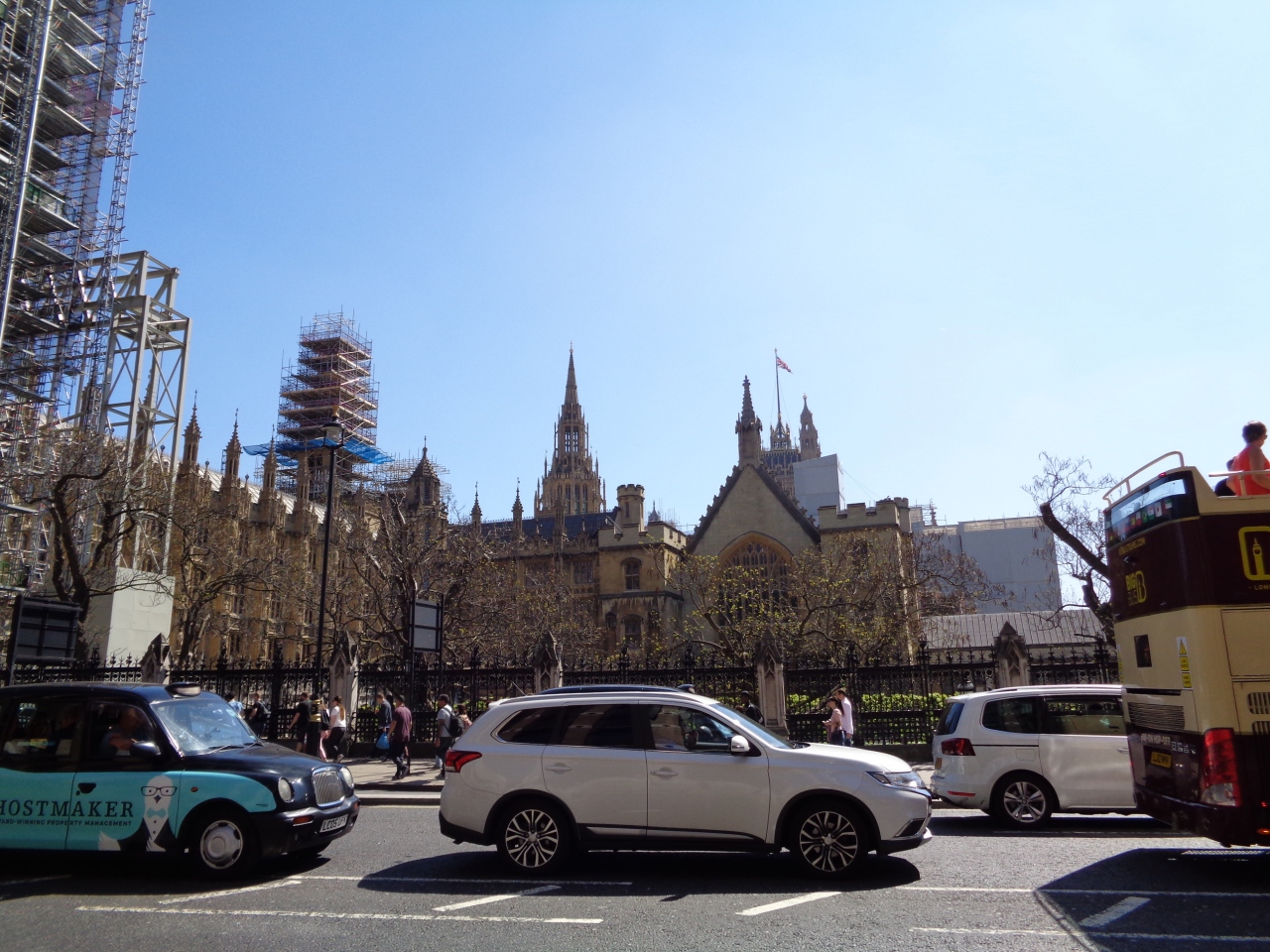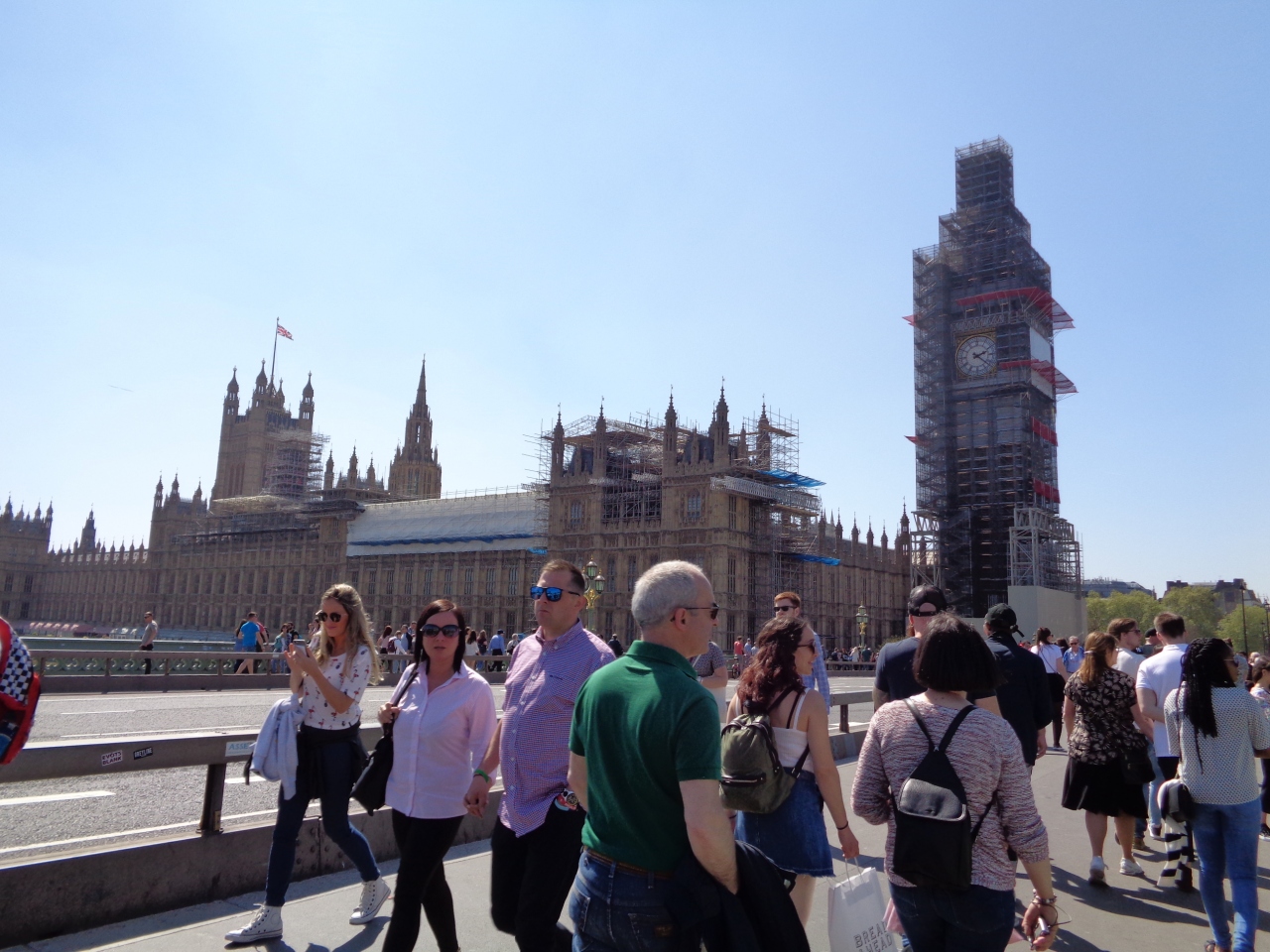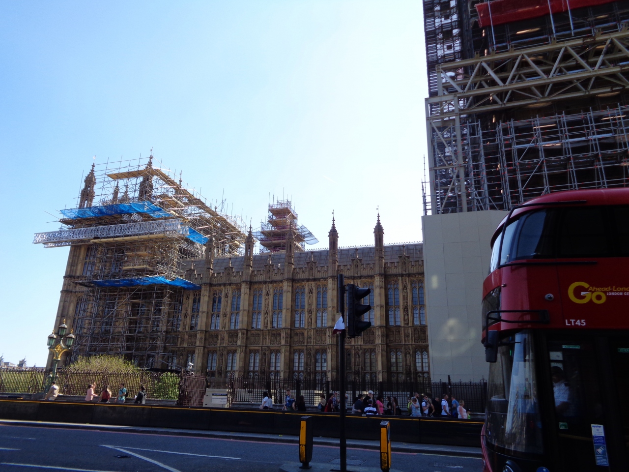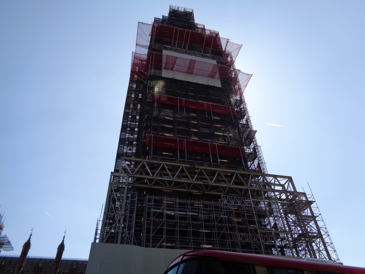 2017年から2021年までの大規模な修復工事のため、現在はビッグベンだけでなく国会議事堂全体が足場で覆われつつあります。ヴィクトリア・タワーだけは足場が(まだ?)ありませんでした。