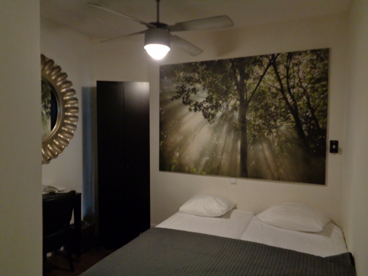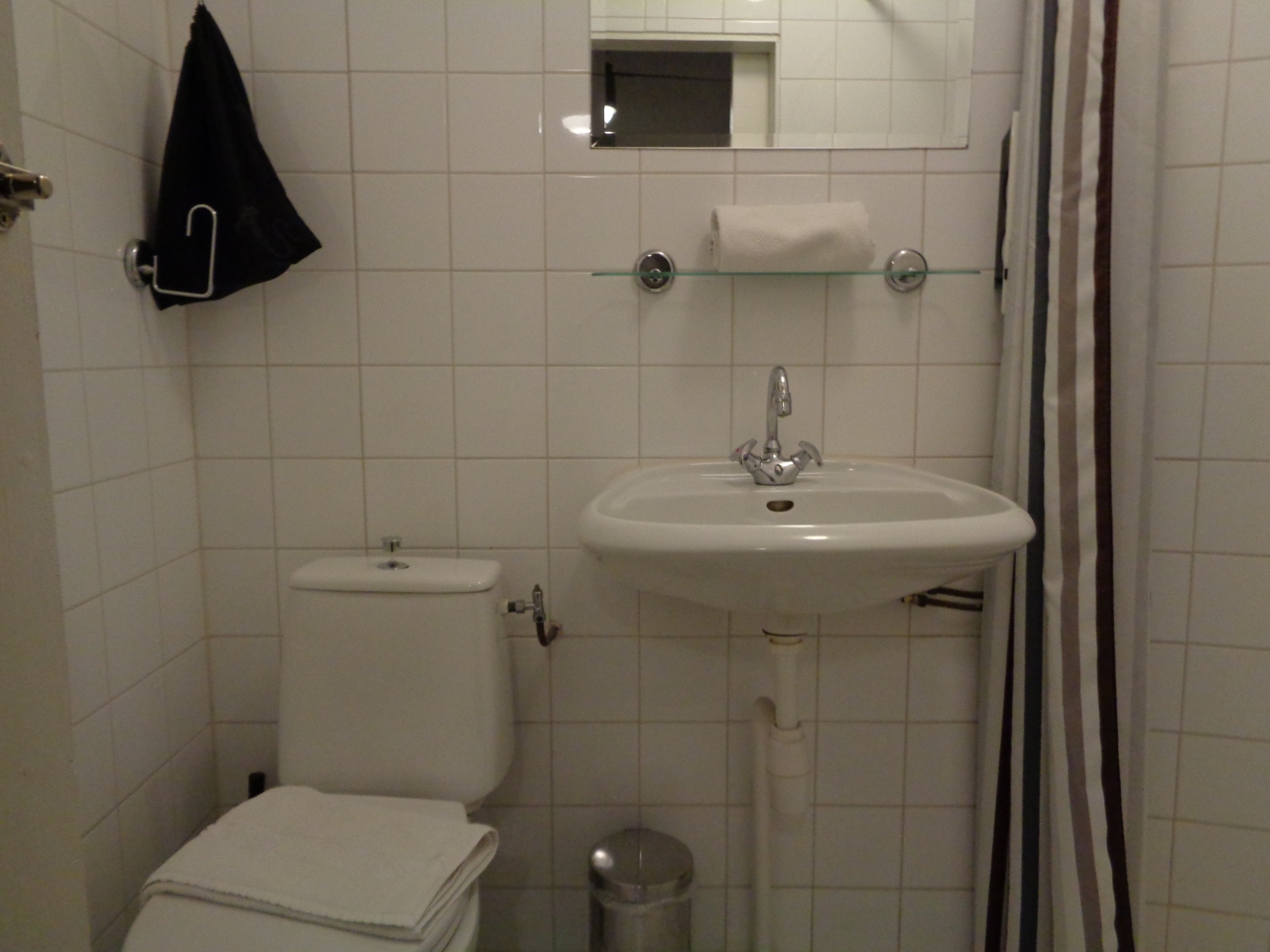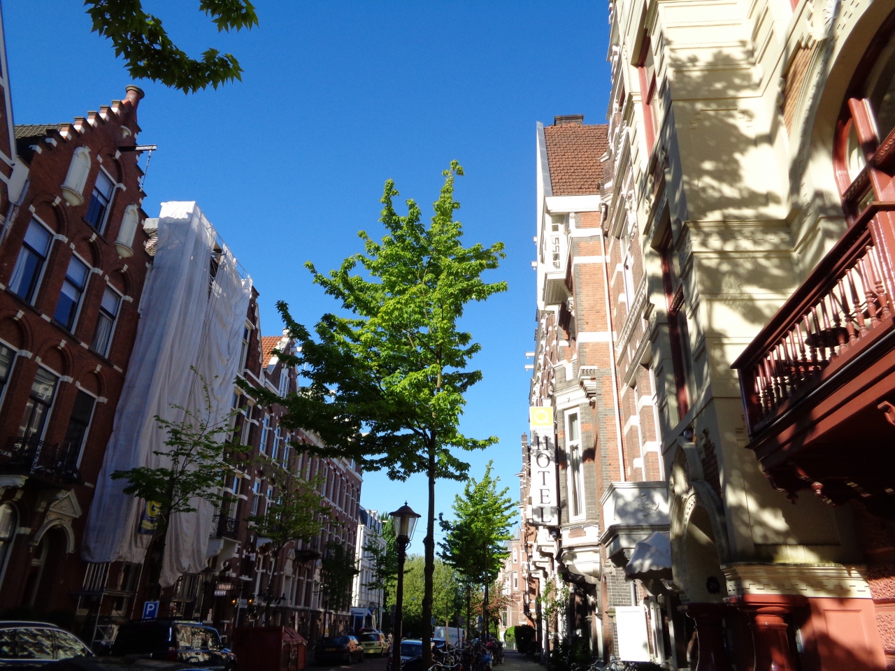 キューケンホフ開園中だったので、アムステルダムのホテルはどこも高く、直前になって発見したこちらのホテルに予約を変更しました。バストイレはありますが、窓のない部屋。外観を見ると隣の建物とぴったりくっついているので、窓が無いのも納得でした。