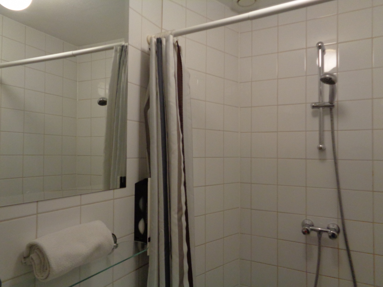 シャワーは熱湯が出る蛇口と水が出る蛇口を両方捻って温度を調節しなければならないので、難しかったです。