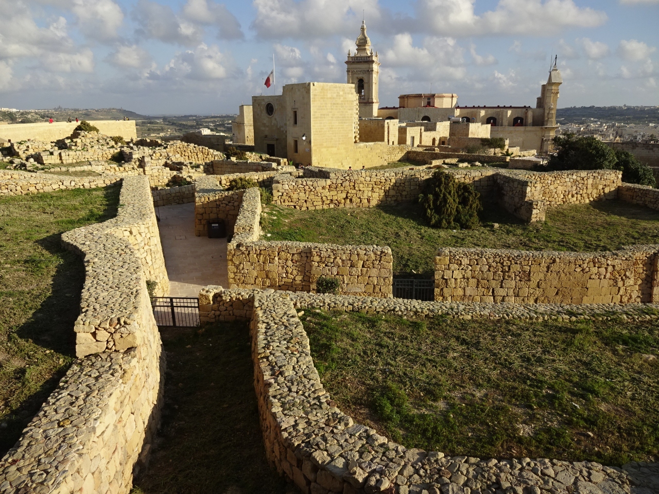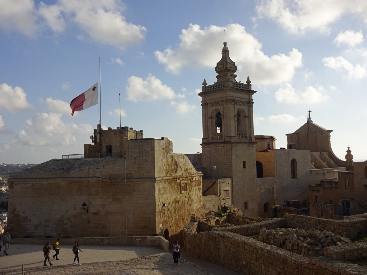 資金不足が原因でドームが造れず、かわりに天井にだまし絵を描いたそうですが、大聖堂の裏の大城塞から眺めれば分かる通り、ゴゾ島には立派なドームを持った教会が沢山あります。頑張れば資金を集められたのでは?と思わなくもない。
