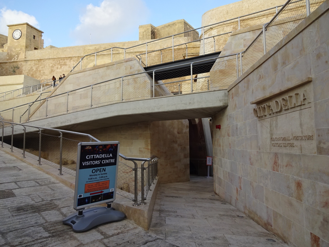 ヴァレッタ~スリーシティーズ間のフェリー乗り場の看板に従って歩いていたら辿り着きました。港に下りるバラッカリフトの乗り場は、アッパーバラッカガーデンの中にあります。