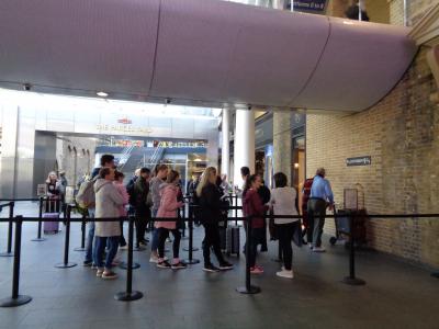 言わずと知れたハリポタファンの聖地、9と4分の3番線。位置的には8と4分の3番線といったところです。朝9時前に行ったらまだ人が少なかったですが、9時過ぎには行列が出来ていました。