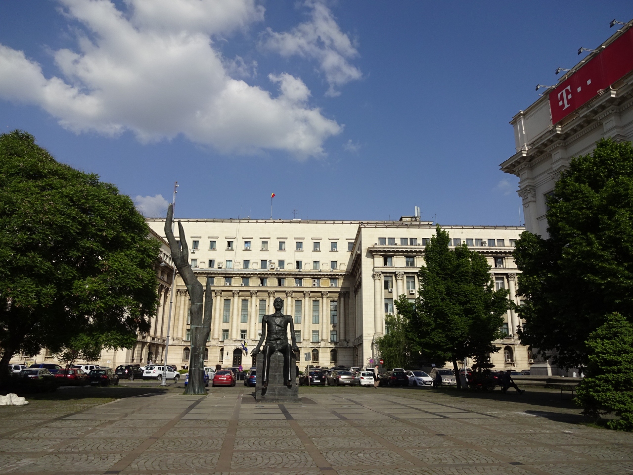 革命広場は、ルーマニア革命時に銃撃戦の舞台となりました。敷地内にある旧共産党本部は、独裁者ニコラエ・チャウシェスクが最後の演説を行い、聴衆の反発に遭って屋上から妻エレナとともにヘリコプターで逃げた場所です。