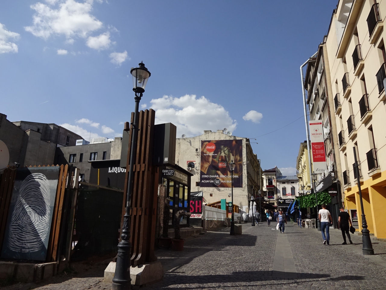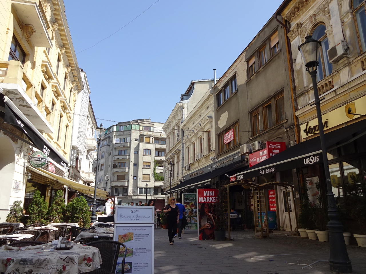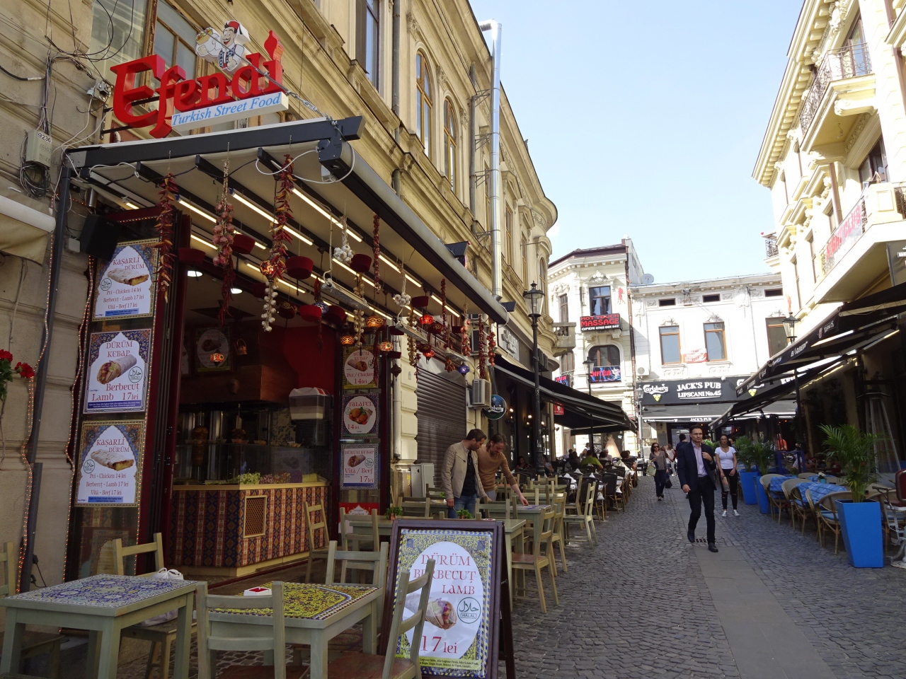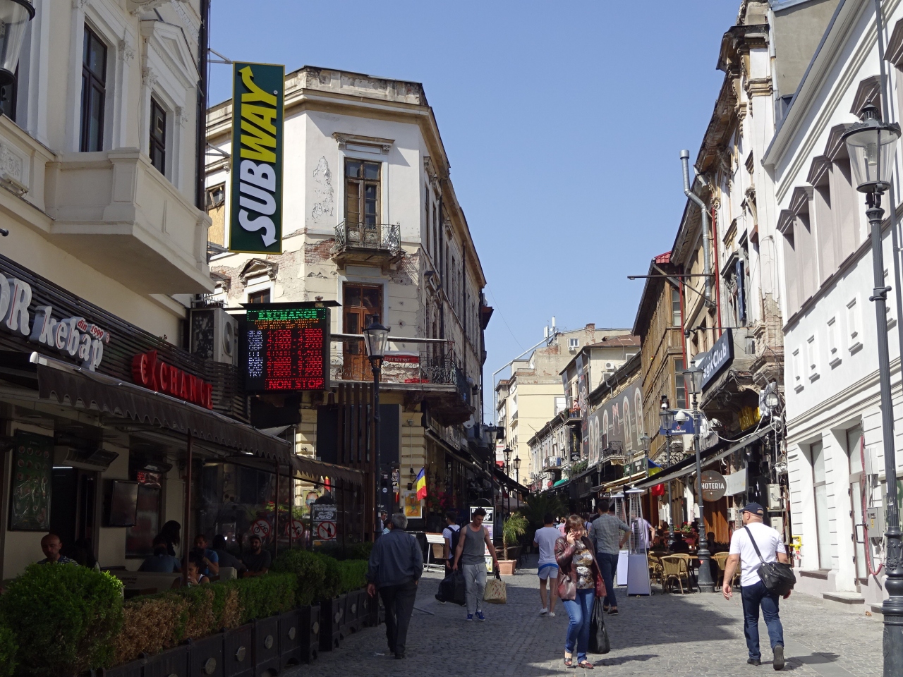 統一広場駅から北へ向かい、ドゥンボビツァ川を渡った先がブカレスト旧市街です。全体的に歩行者天国で、このエリアに入ったらなんだかホッとしました。