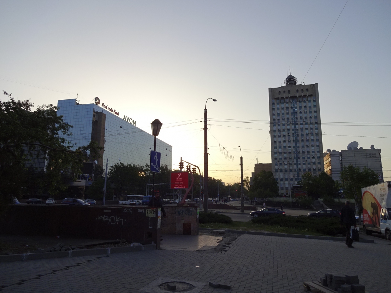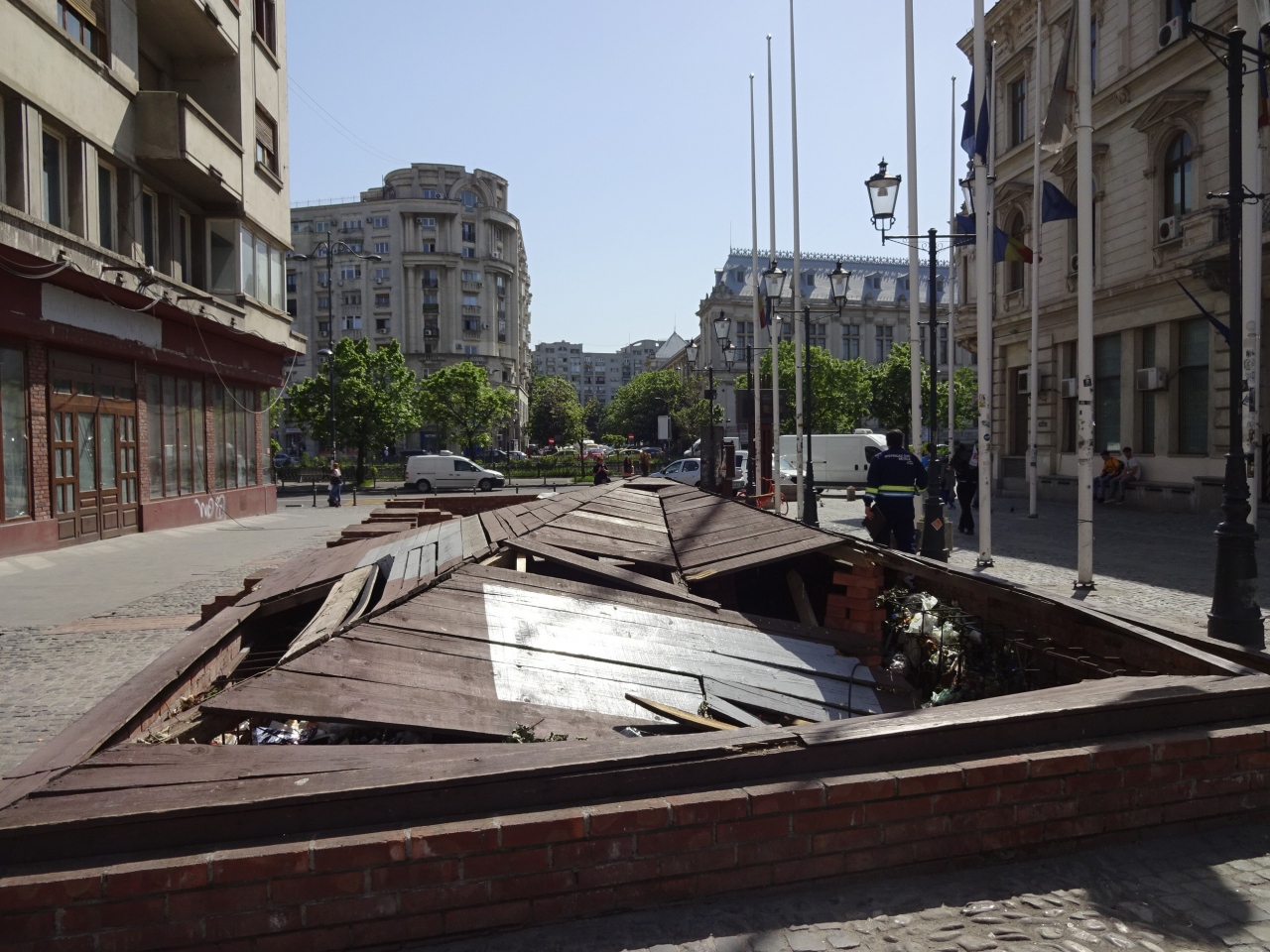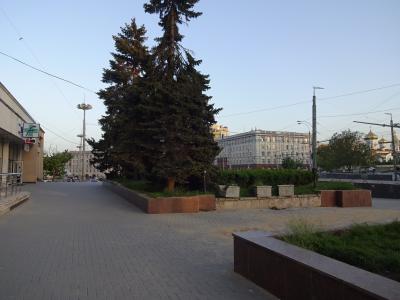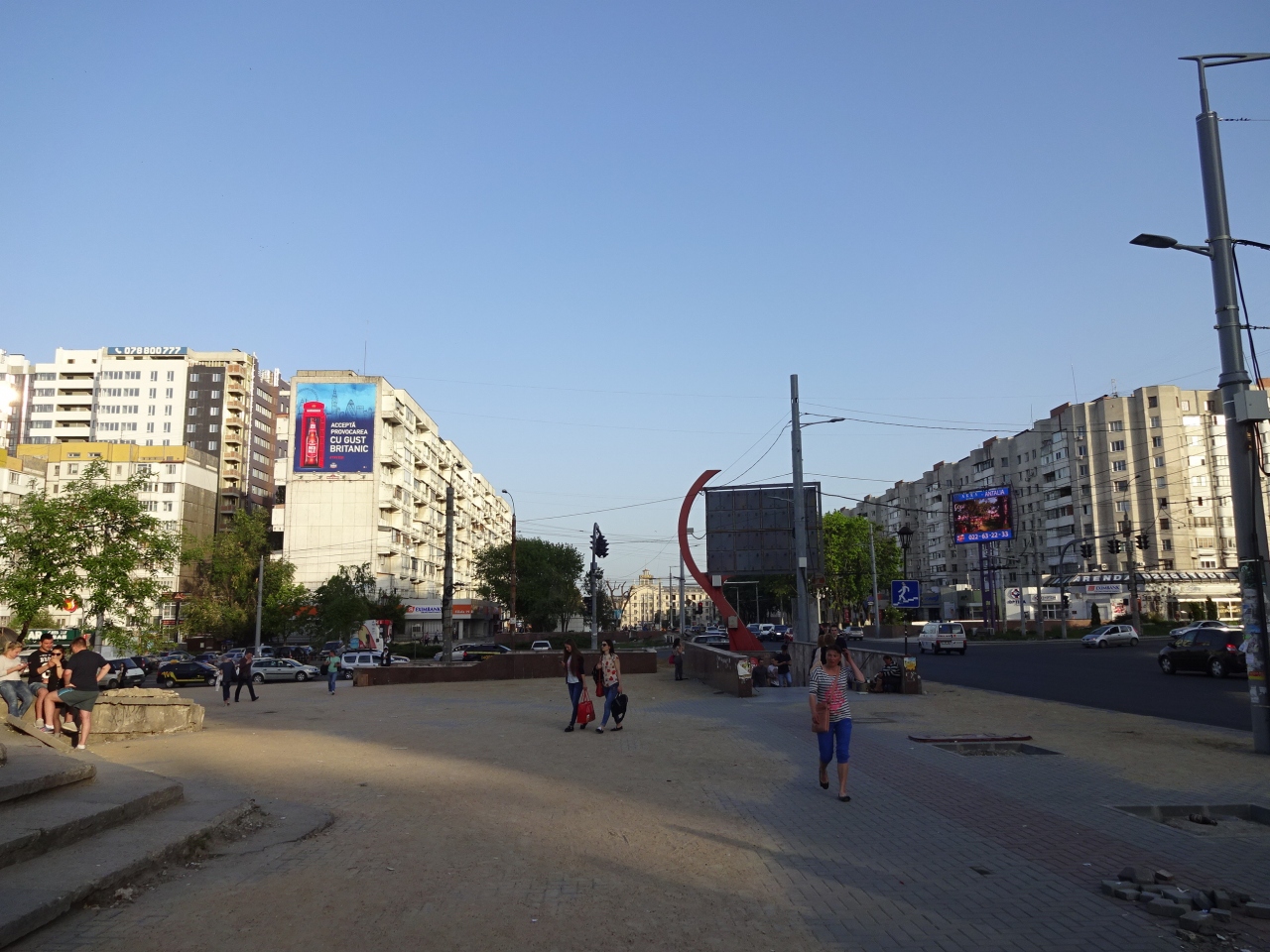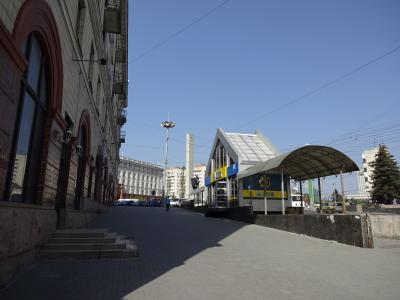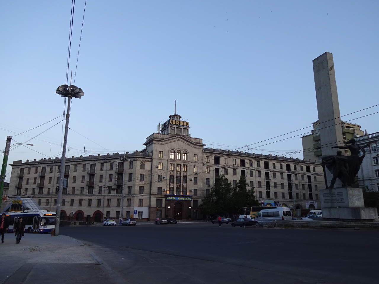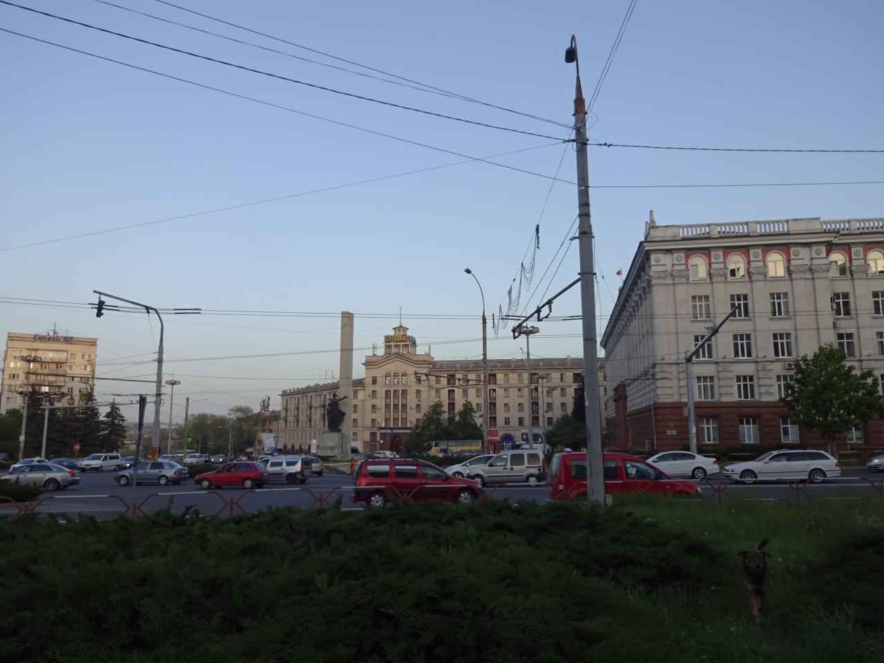 駅方向から歩いてくるとシュテファン・チェル・マレ大通りの入口になる広場ですが、周辺は廃墟が多くて寂しい雰囲気。周辺にあるめぼしい建物はキシニョウホテルくらいです。横断歩道がなく地下道がありますが、昔はお店が並んでいた内部は完全に廃墟になっています。