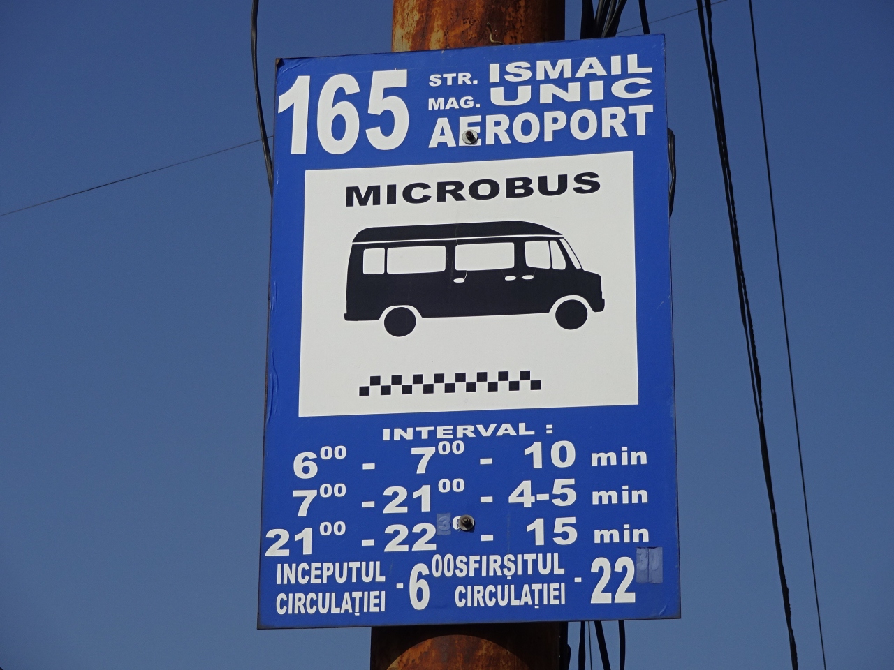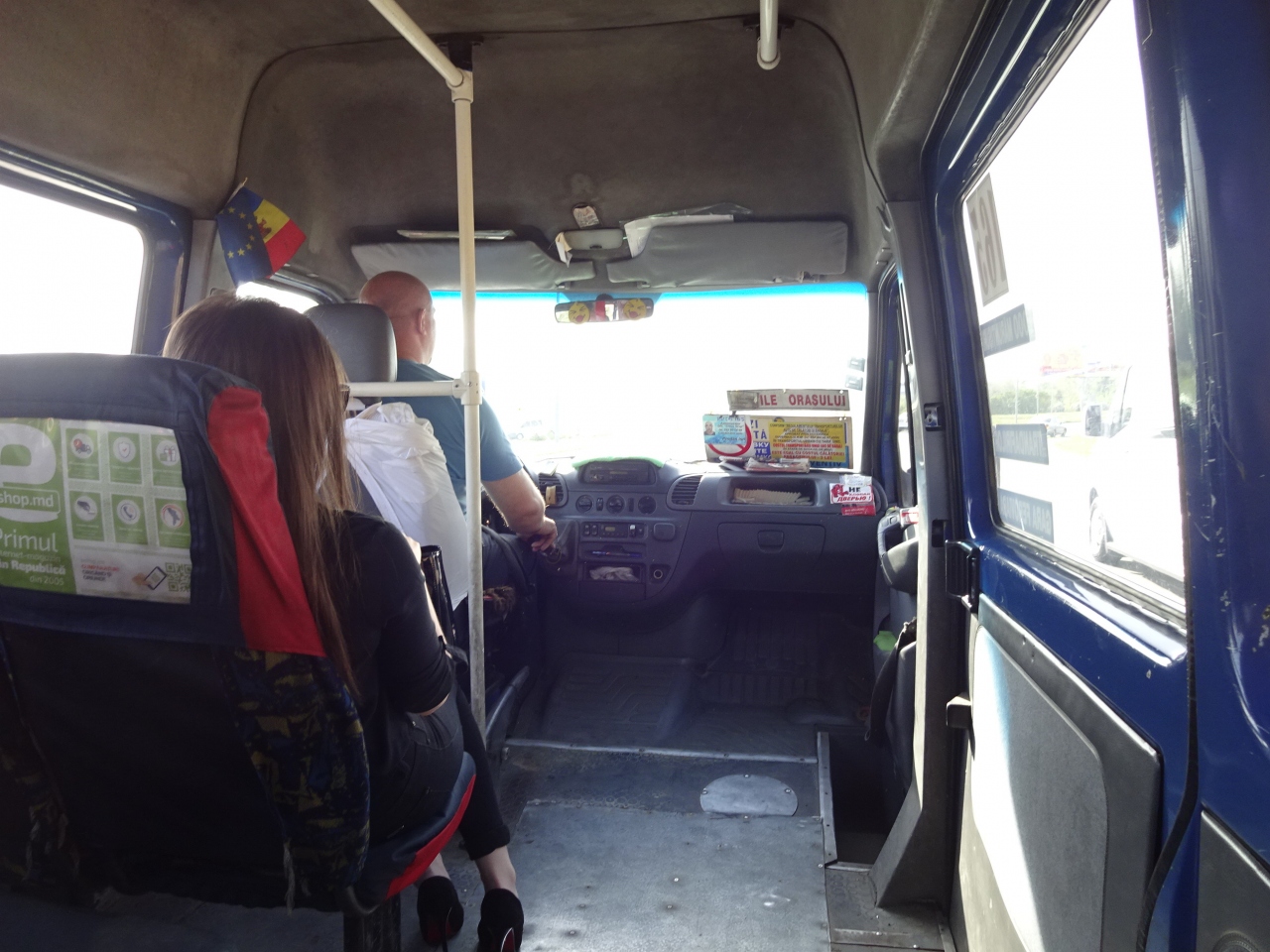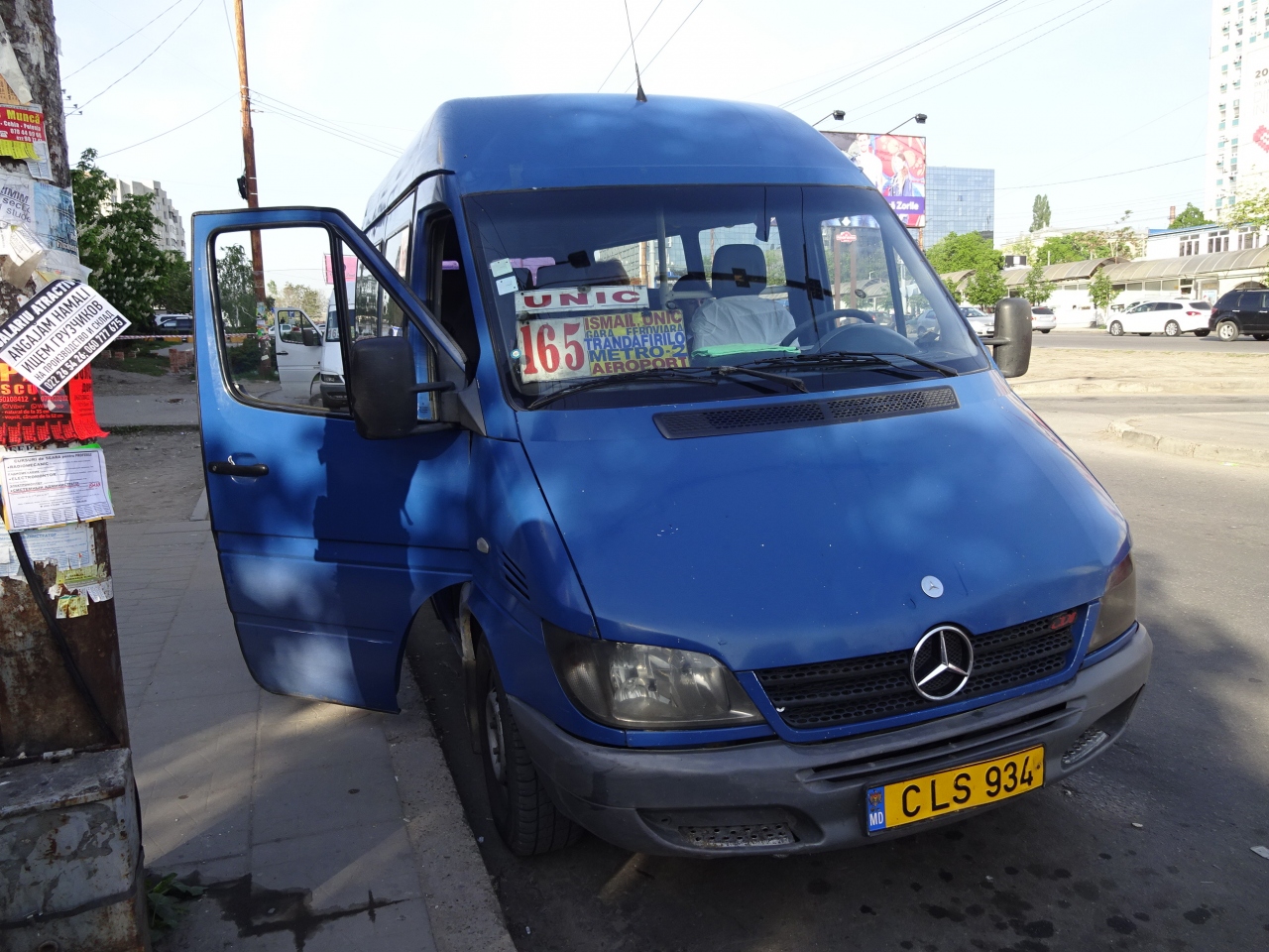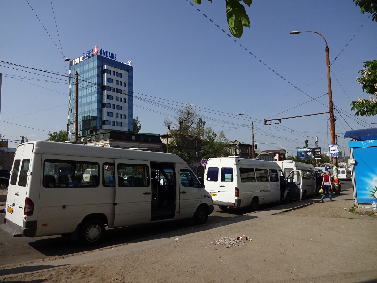 キシニョウ市内から空港へ行く場合は、165番マルシュルートカ(ミニバス)が便利です。イスマイル通りにあるバス停から所要30分で、運賃は3レイと爆安。6時から22時までの運行で、7時から21時は4~5分に1本と頻発しています。バス停に3~4台が停まっていて、時間になると先頭の車両が発車していきます。