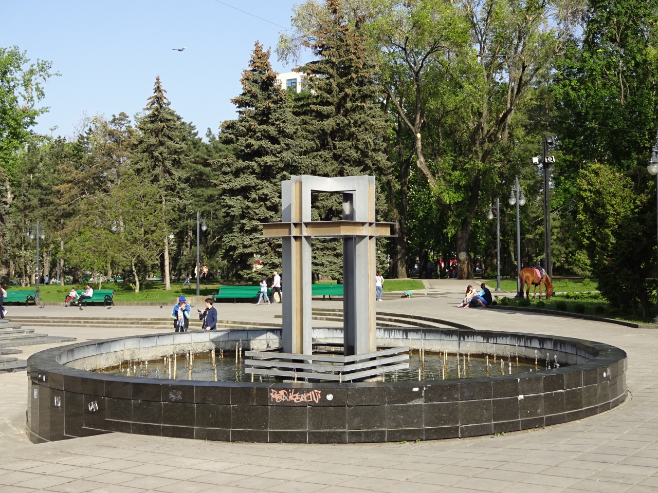 敷地がとても広く、市民の憩いの場という感じでした。木陰のベンチが心地良いです。中央市場寄りの辺りには売店が集中しており、キシニョウでは存在自体が非常に珍しい、観光土産を売るお店もありました。