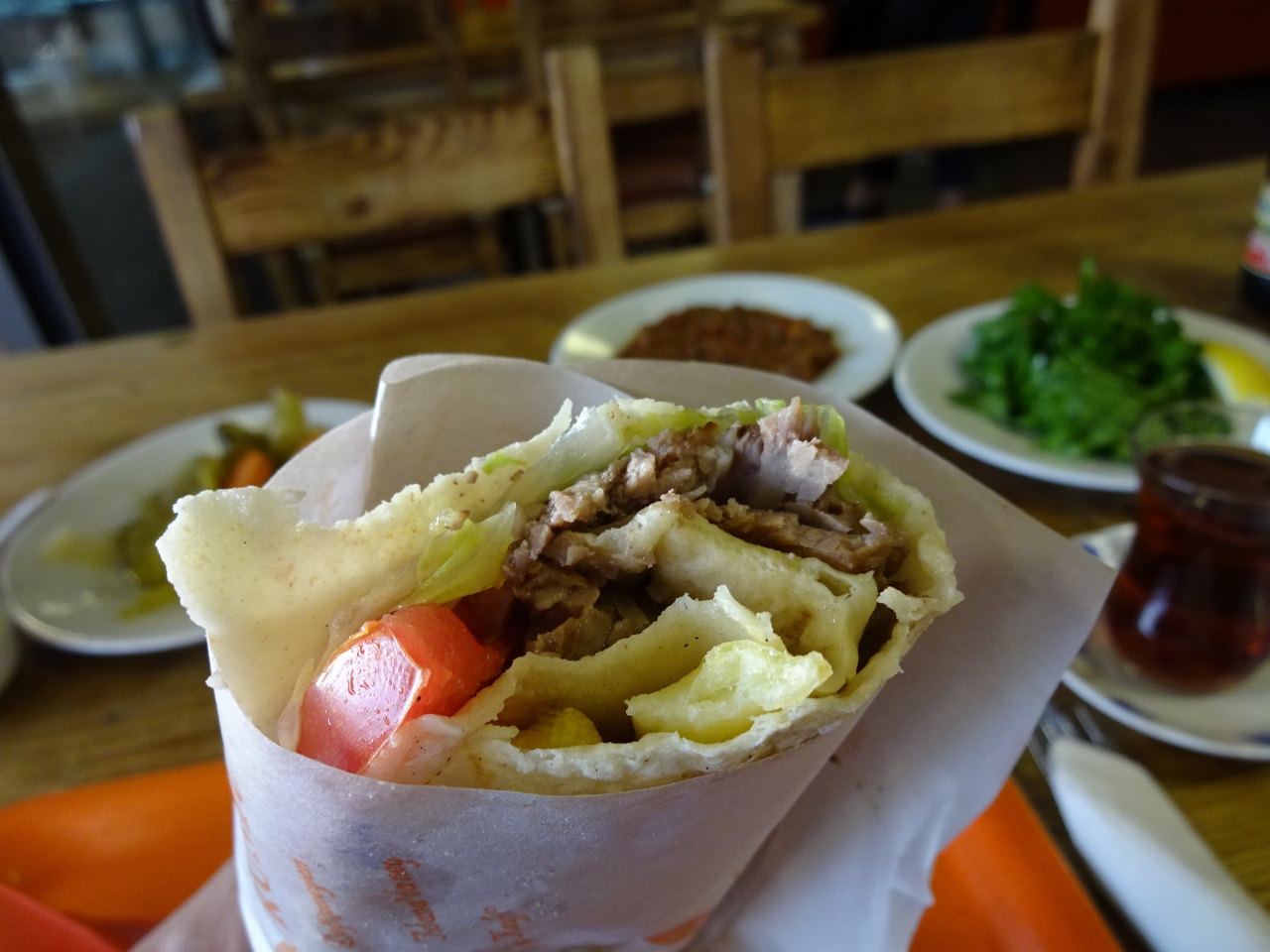 大きな建物の1階(その上も?)に入っている広いお店で、食堂かファストフード店のような店構え。地元の人で賑わっていました。地球の歩き方にも掲載されているお店ですが、ベシクタシュ自体ドルマバフチェ宮殿の近くとはいえ観光客がそれほど来なさそうな感じだったので、店員さんが凄く歓迎してくれました。