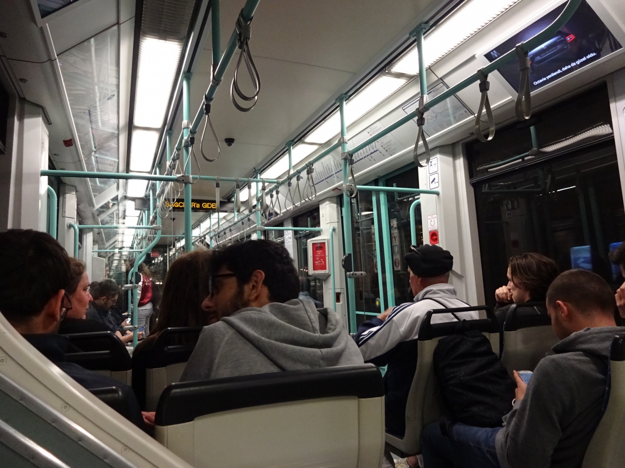 イスタンブールの主要スポットを通る路線だけあって、始発のカバタシュの時点で既に車内はほぼ満席でした。
