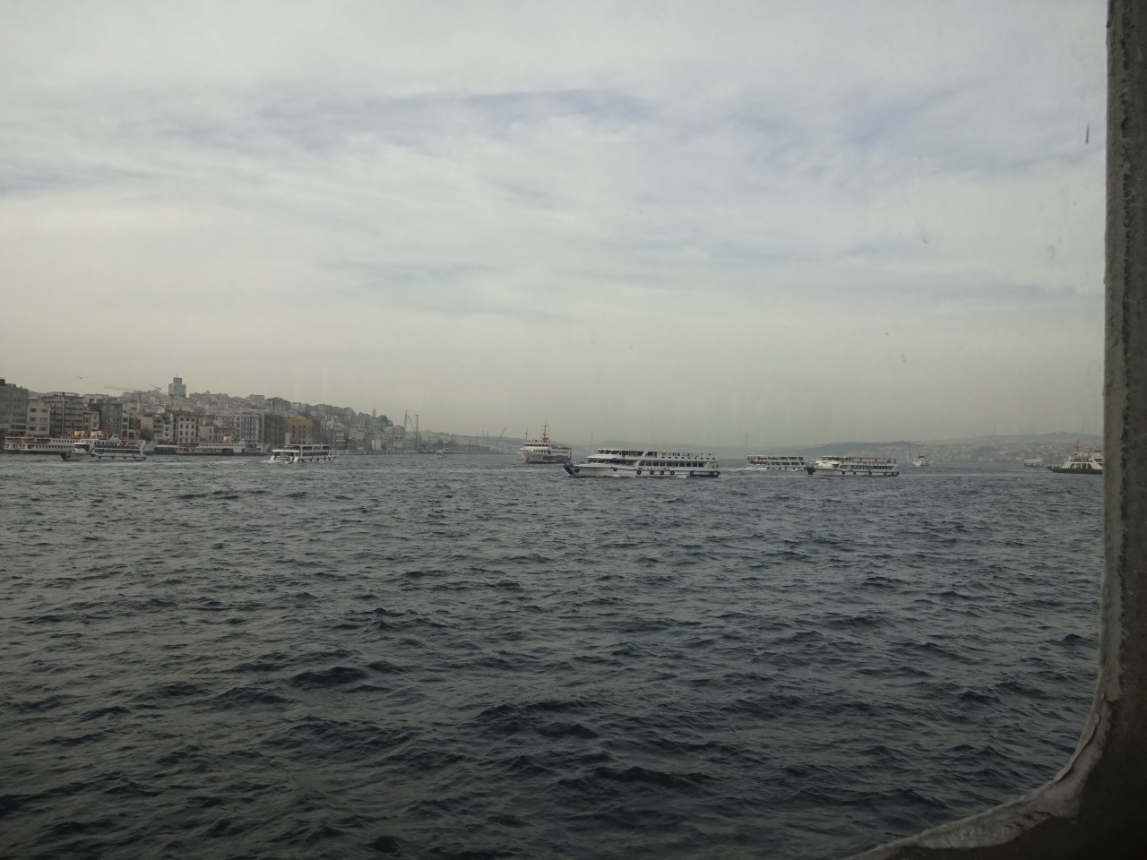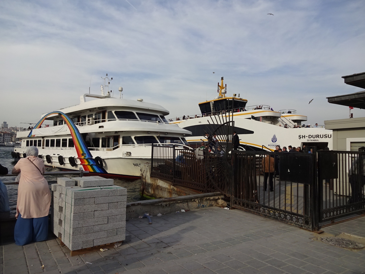 エミノニュ埠頭から適当なフェリーに乗り込みました。エミノニュだけでも埠頭がいくつもあり、それぞれ行き先が異なるようです。埠頭の入口には自動改札があり、イスタンブールカードで気軽に乗船できます。