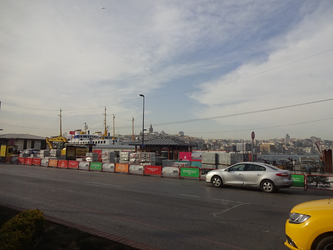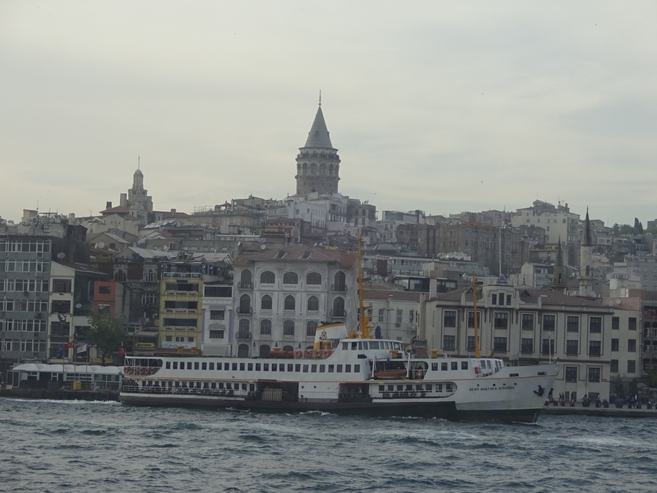特に行き先を決めず、新市街にでも行こうかなとT1トラムに乗っていましたが、ガラタ塔が見えたので思わずこの駅で下車しました。ガラタ橋を挟んで新市街が一望できます。トラム駅の目の前にワプル(フェリー)乗り場があり、周辺は非常に混雑していました。