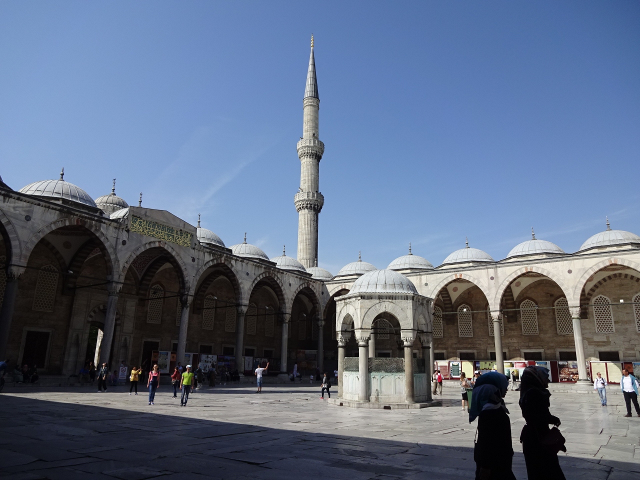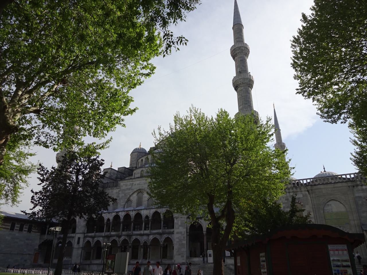 言わずと知れた、トルコを代表する有名なモスク。中庭にある入口は礼拝者用のもので、観光客用の入口は中庭の外側にありました。1日5回ある礼拝開始の時間帯は、観光客は入場できません。