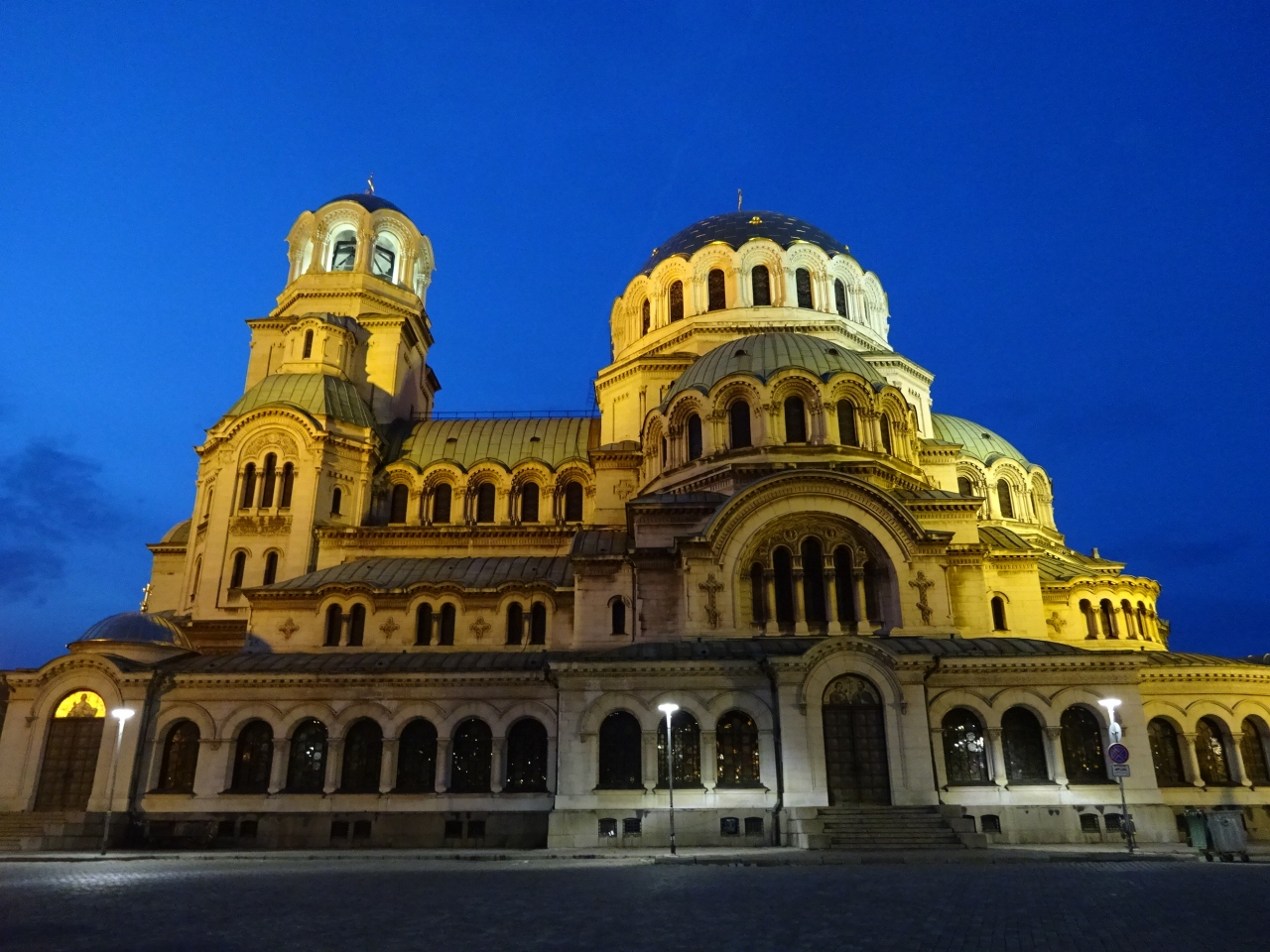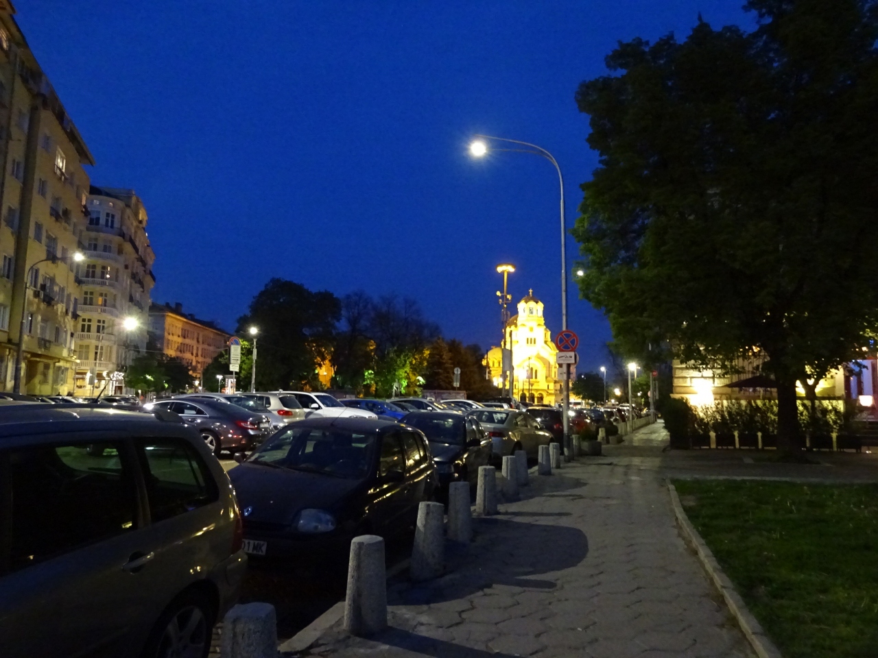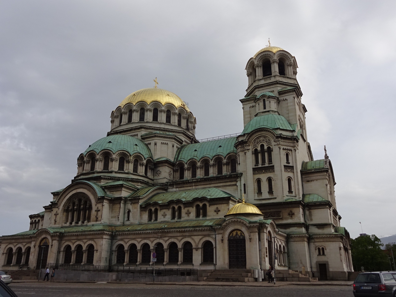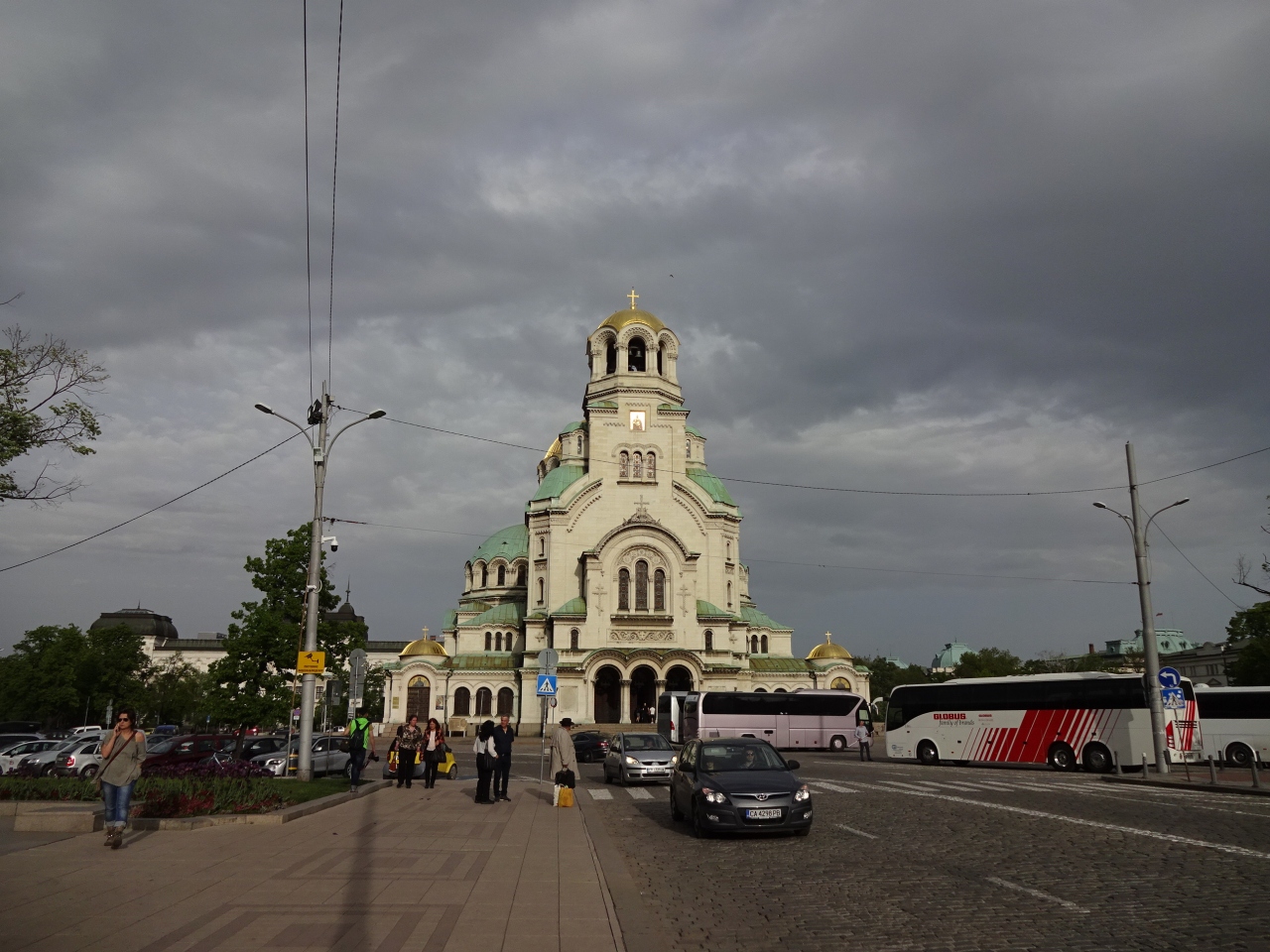 アレクサンダル・ネフスキー寺院の周囲はラウンドアバウトと不規則な並びの駐車場になっており、ボケっと上を見ながら歩いていると危ない。正面の邪魔な位置に観光バスがずらっと並んでいたので、思うような位置から写真が撮れなかったりします。- 旅行時期