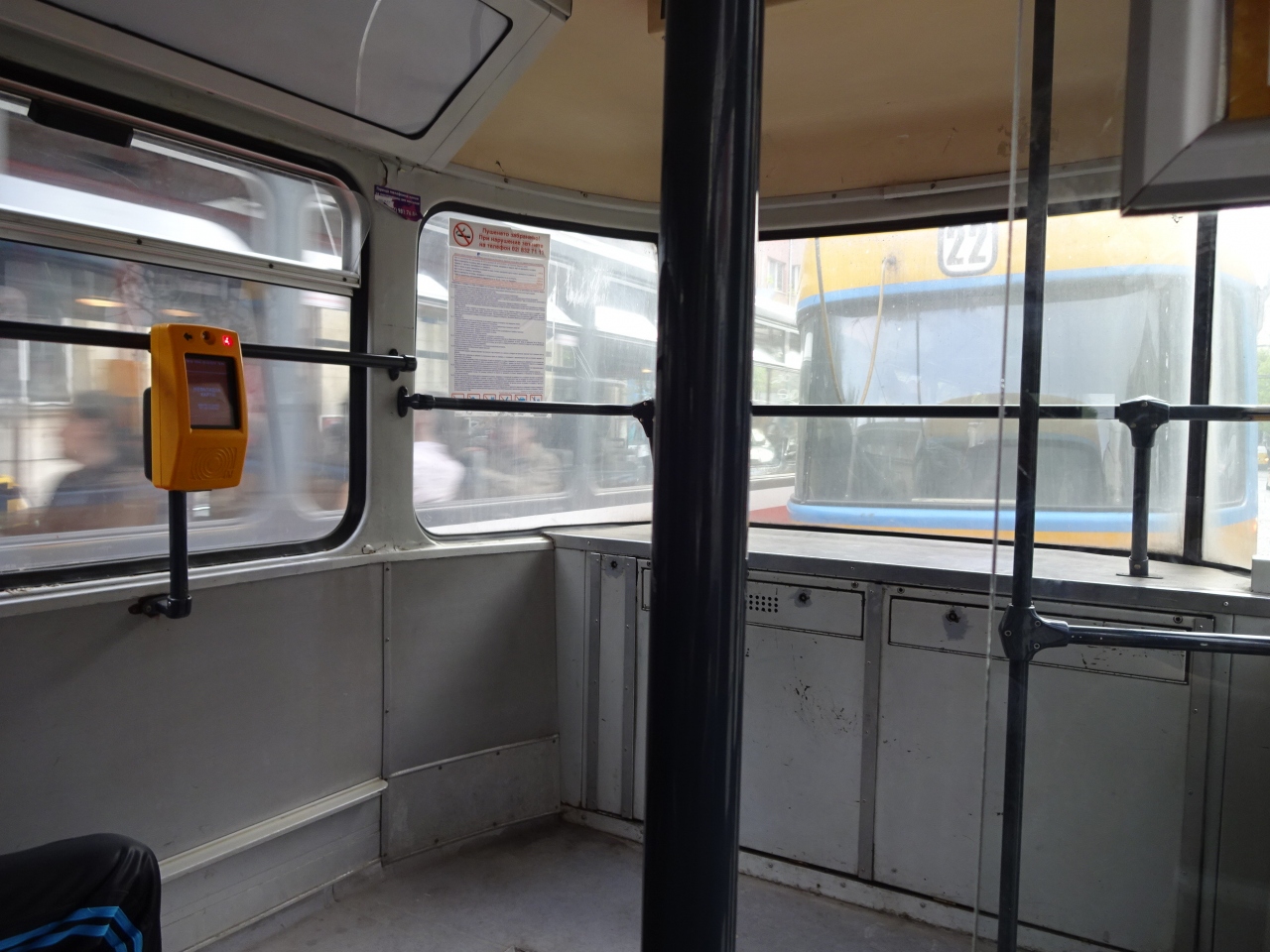 しかしトラムの車内に券売機が設置されている車両もあります。券売機は0.50Lv以下のコインしか使えませんでしたが、運転手に頼めば両替してくれます。