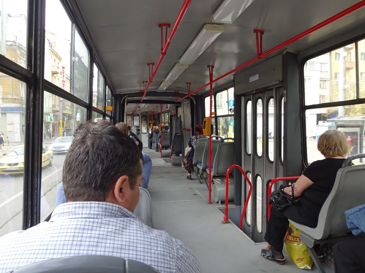トラムの停留所といえば通常は中央分離帯のような所にあると思いますが、ソフィアのトラム停留所はバス停のように路肩にありました。道路の真ん中を走っているトラムにどうやって乗り込むのかというと、普通に車が走ってくる車道を横切って乗り込むのです。交通事故にはお気を付け下さい。- 旅行時期