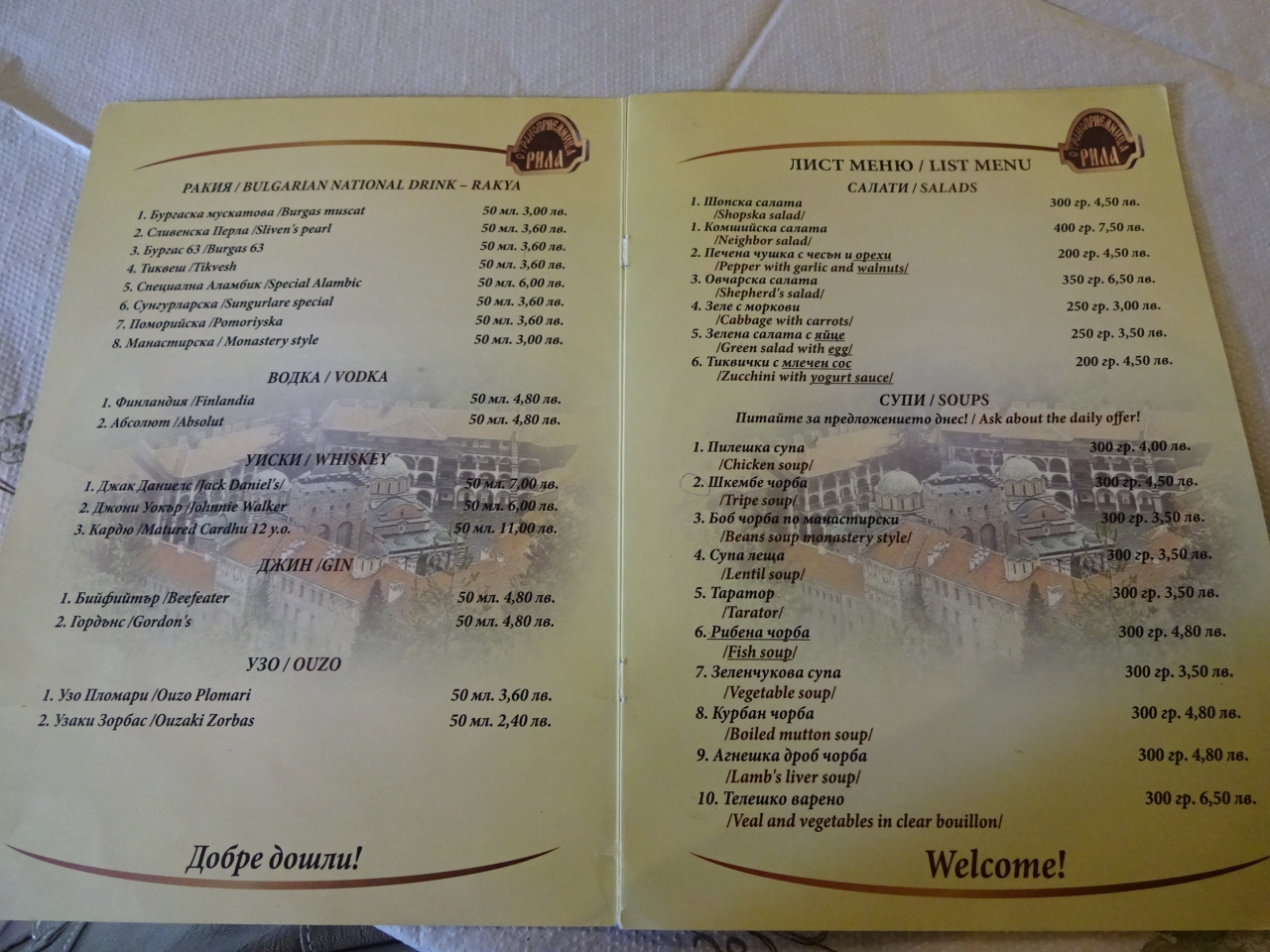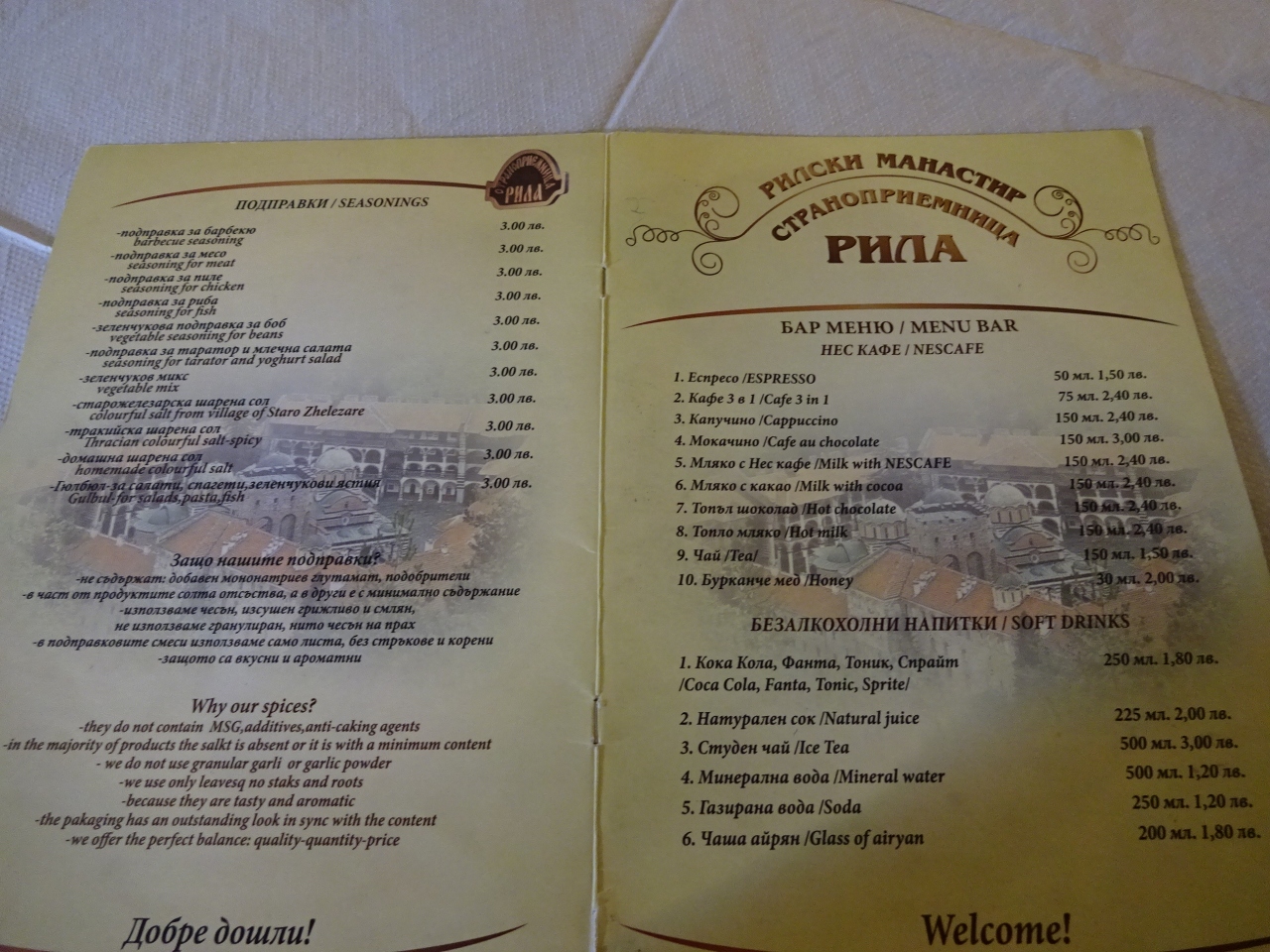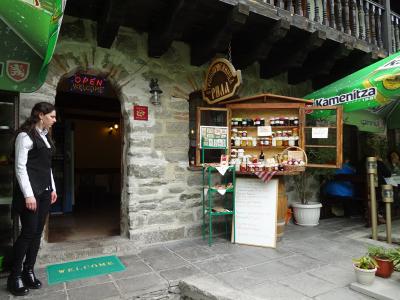 リラの僧院の裏門から出て、道なりに坂を下ったところにあるレストランです。旅先で知り合った人と後から店内で合流するつもりで、1人でお店に行ったら「一人なの?」と嫌な顔をされました。1人だったら入れて貰えないんだろうか?