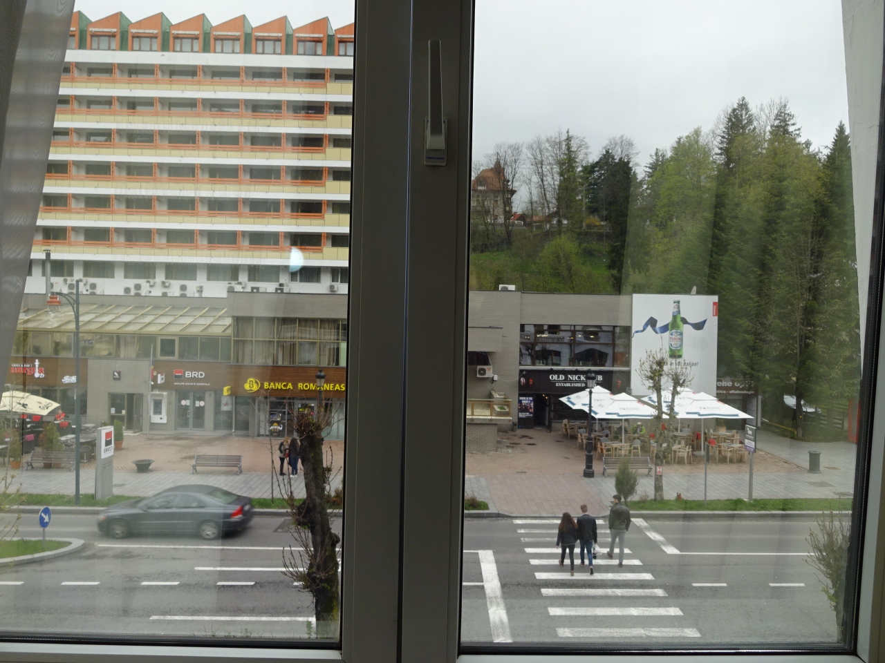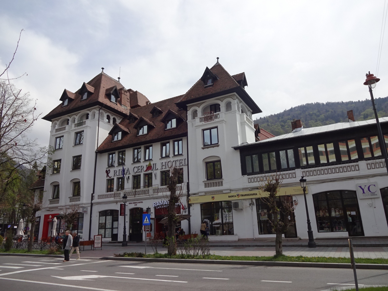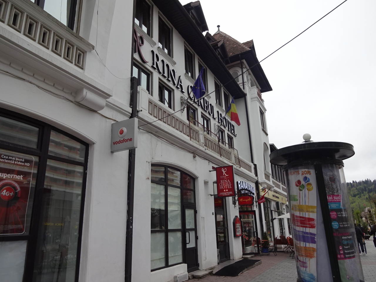 シナイア駅からカロル1世大通りに出て、道なりに歩くとすぐの所にあるホテルです。大通り沿いにはレストランやスーパーも沢山あって、とても便利な立地。建物自体も可愛く、1階にはアンティークショップやインド料理レストラン、銀行が入っています。