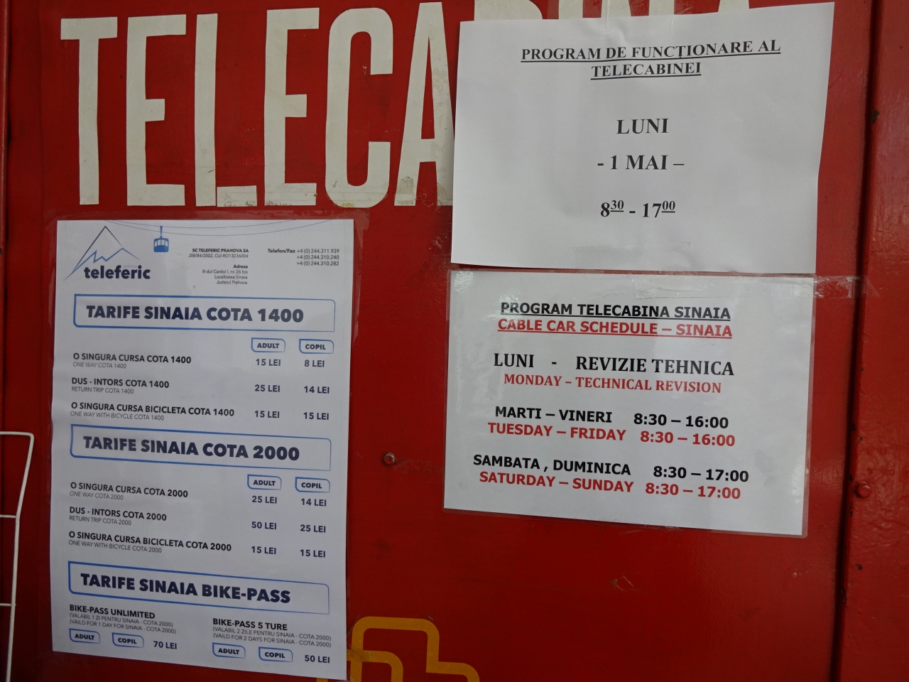 私は1400に行きました。COTA1400まで行ってしまうと街が遠くて障害物もあって下界は見えないので、ロープウエイ乗車中に景色を見て下さい。シナイア一帯が一望出来るのは、上りはゴンドラの入口側、下りはその逆の窓です。ペレシュ城も見えます。