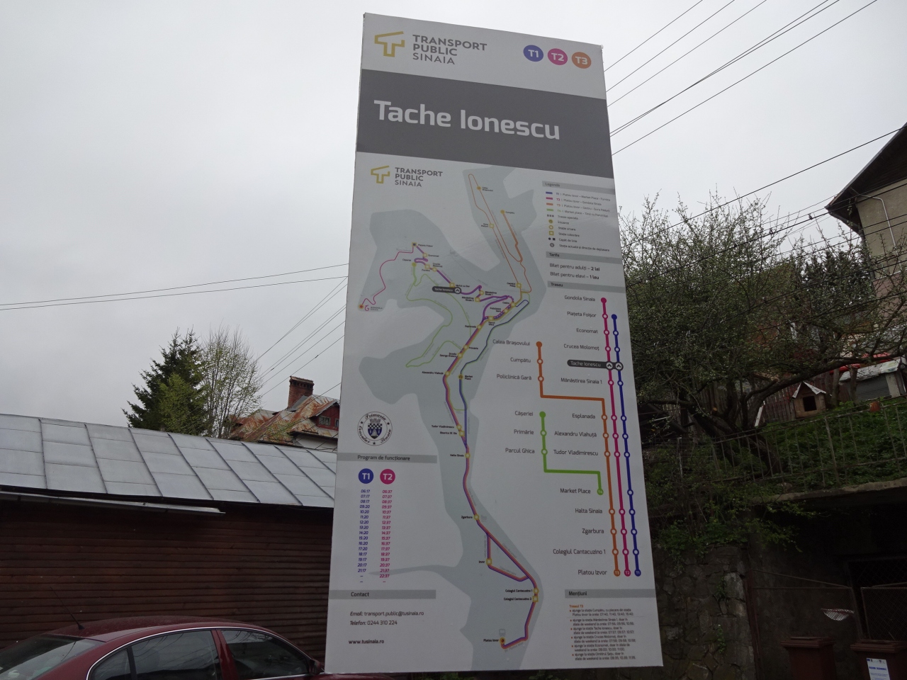 シナイアの街中には、主要な観光スポットやホテルの方向を示す案内板があちこちにありますが、これに従うとやたら遠回りするはめになったりしたので、地図か地図アプリを見て歩いた方が無難です。