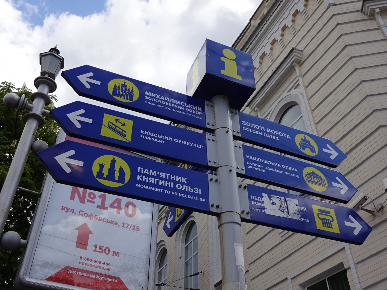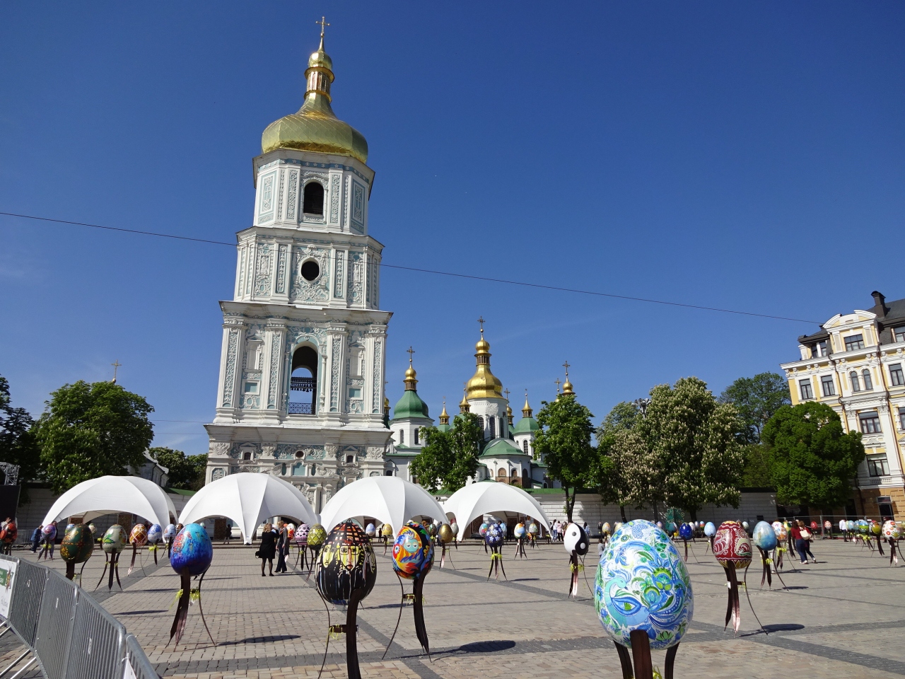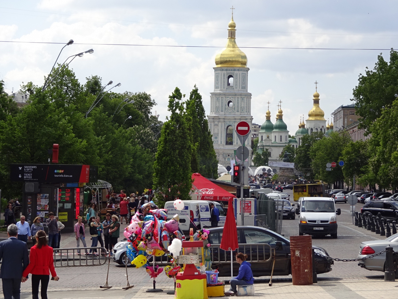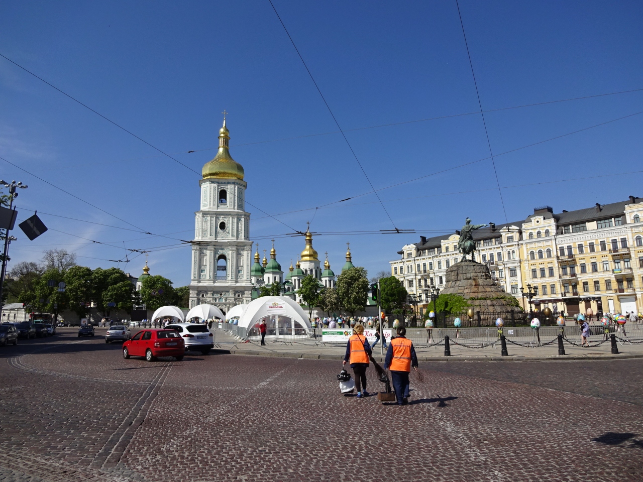 鐘楼とソフィア大聖堂は全くデザインが異なります。大聖堂の外観は17世紀後半にウクライナ・バロック様式で再建されたものだそう。鐘楼は外から見ると、結構傾いているように見えました。- 旅行時期