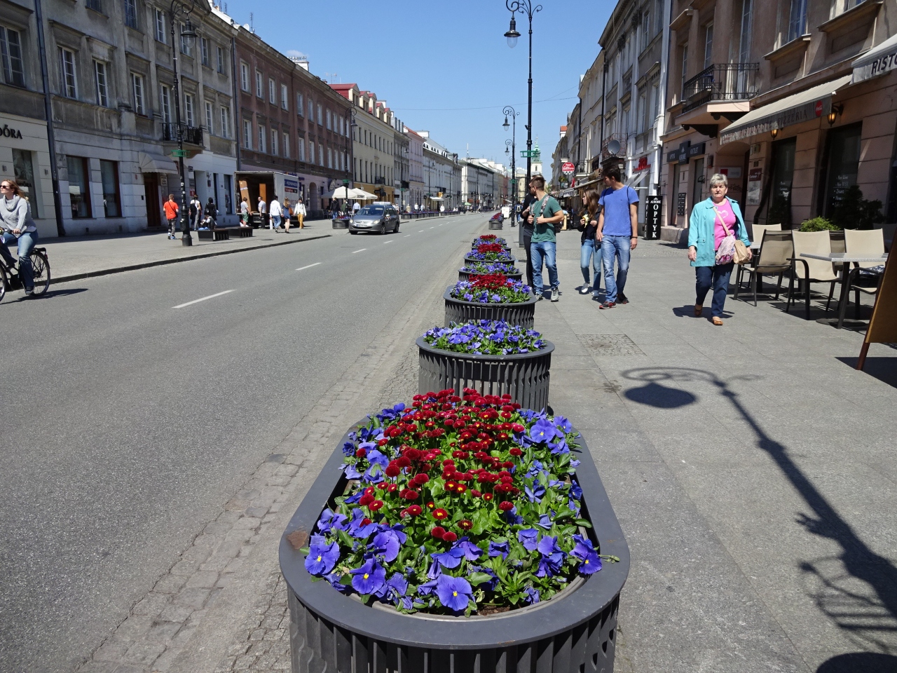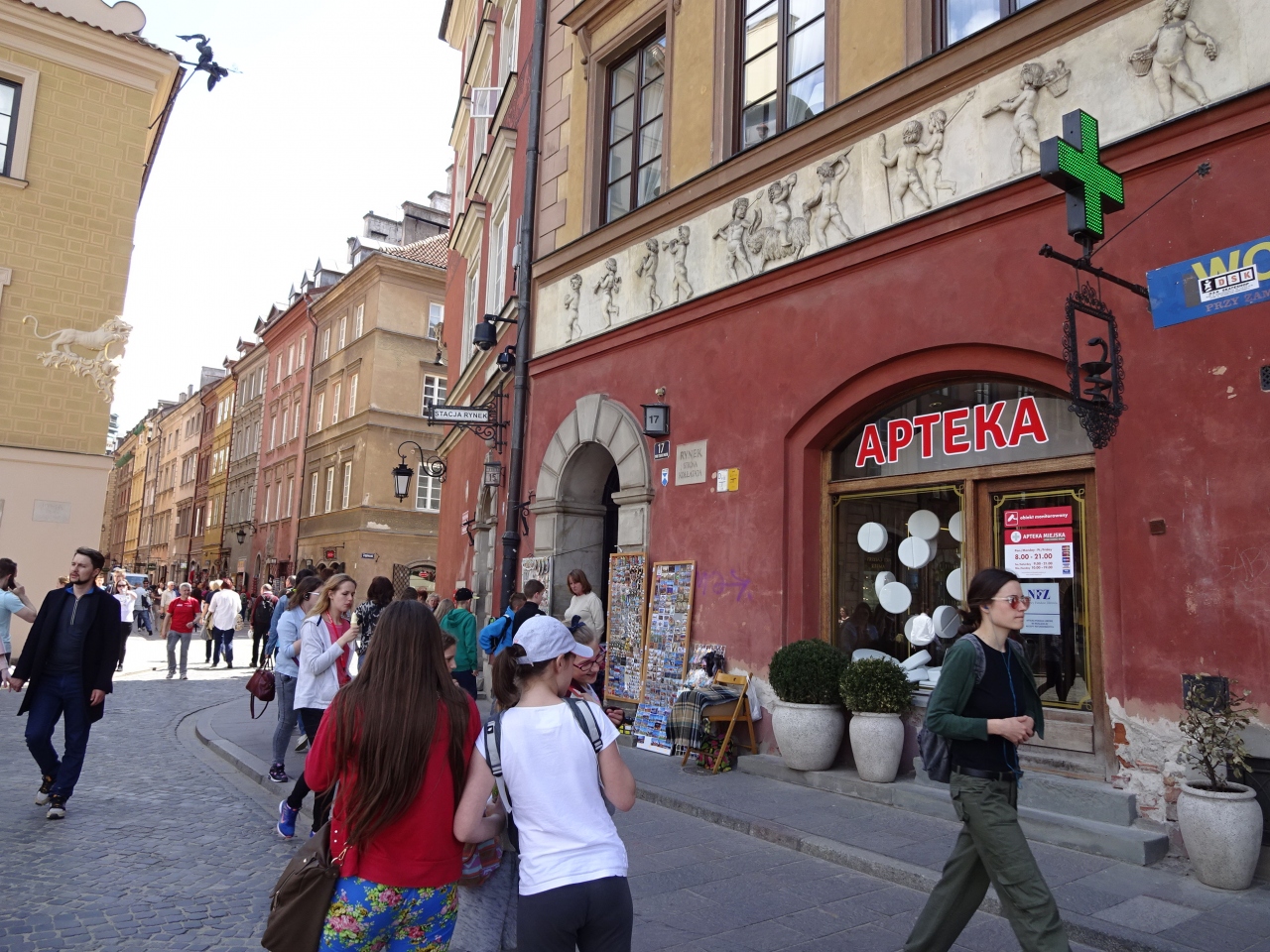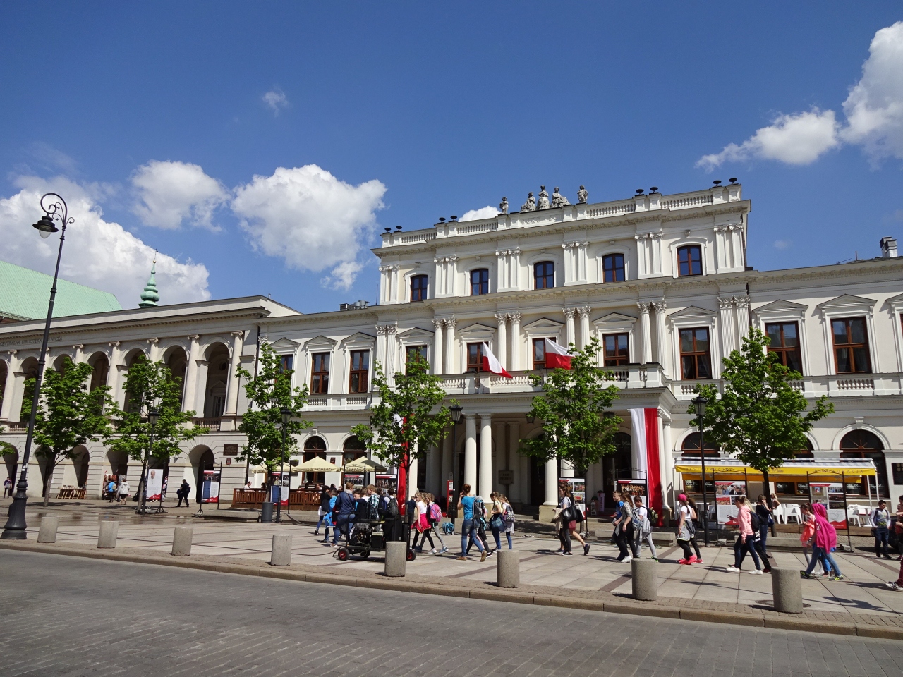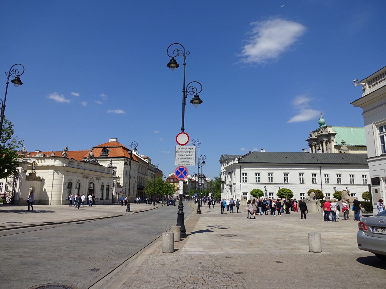 コペルニクス像は、新世界通りとクラクフ郊外通りとの間にある広場に建っています。コペルニクスの足元には太陽系が描かれています。後ろの建物はスタシッツ宮殿、現ポーランド科学アカデミー。