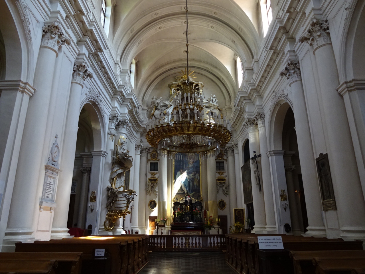 柱の1本にショパンの心臓が納められていることで有名な教会です。新世界通りからクラクフ郊外通りに入ってすぐの所にあります。