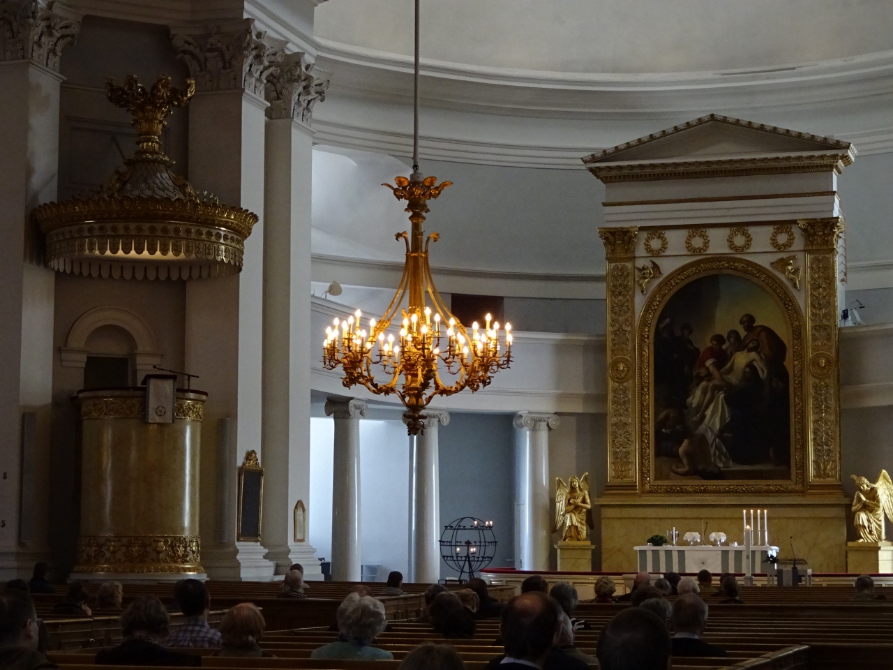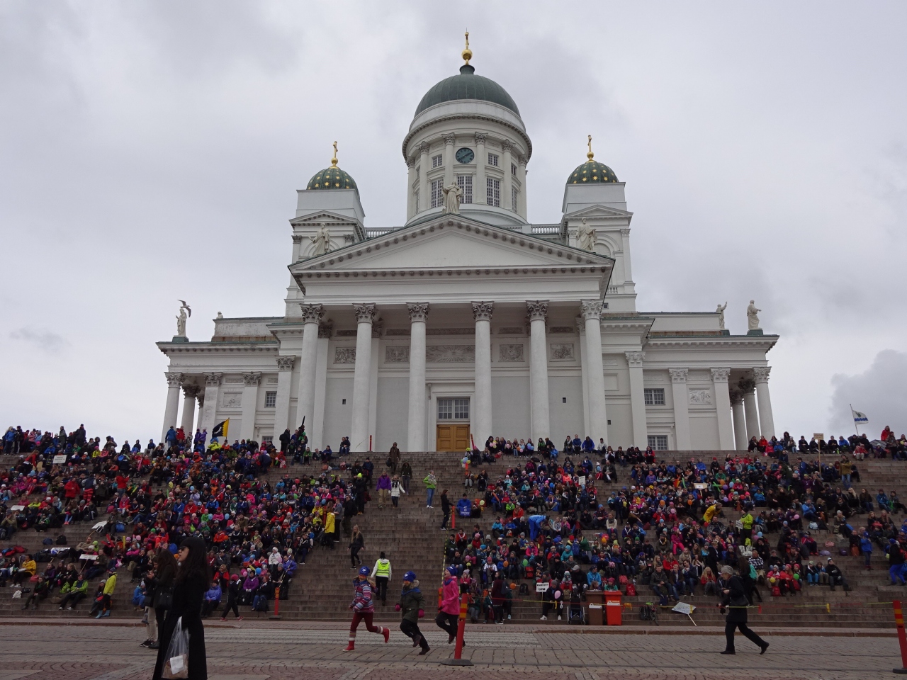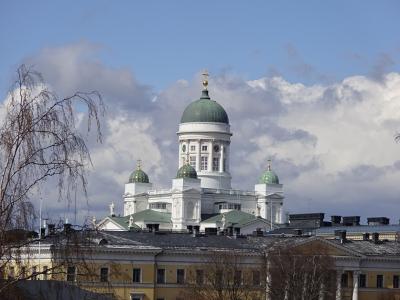 ヘルシンキといえばまず頭に思い浮かぶのはこの建物。実際にこの建物を見て、屋根の色が青じゃないことを意外に思うくらい、私の中でヘルシンキ大聖堂は青のイメージでした。建物の色じゃなくて、青空のイメージが強かったんですね。階段の上に建っているので、背景には空しか見えません。私が行った時は曇っていることも多かったですが、晴れ間が見えた時もあったので嬉しかったです。